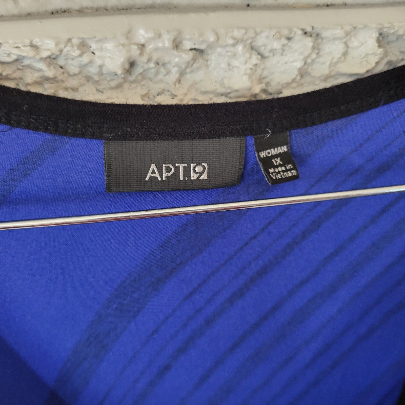 This Apt 9 Women's Dress in size 1X Plus is a stylish and versatile option for any casual or travel outfit. The sleeveless sheath design with a handkerchief hem adds a touch of flair to the classic blue and black striped pattern. Made from a comfortable blend of spandex and rayon, this knee-length dress is machine washable and offers stretch for added comfort. Perfect for all seasons, this dress from Vietnam is a great addition to any woman's wardrobe.