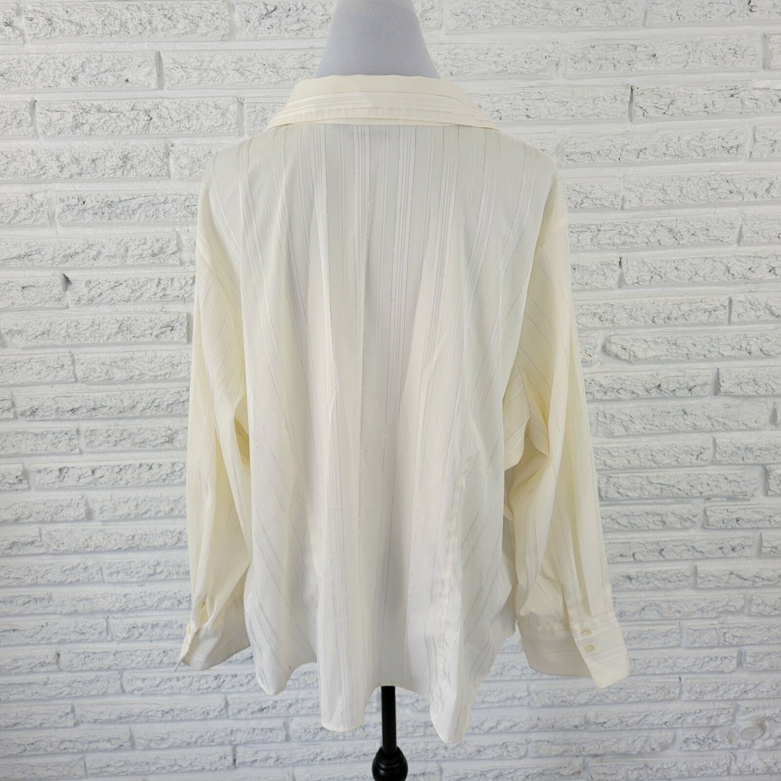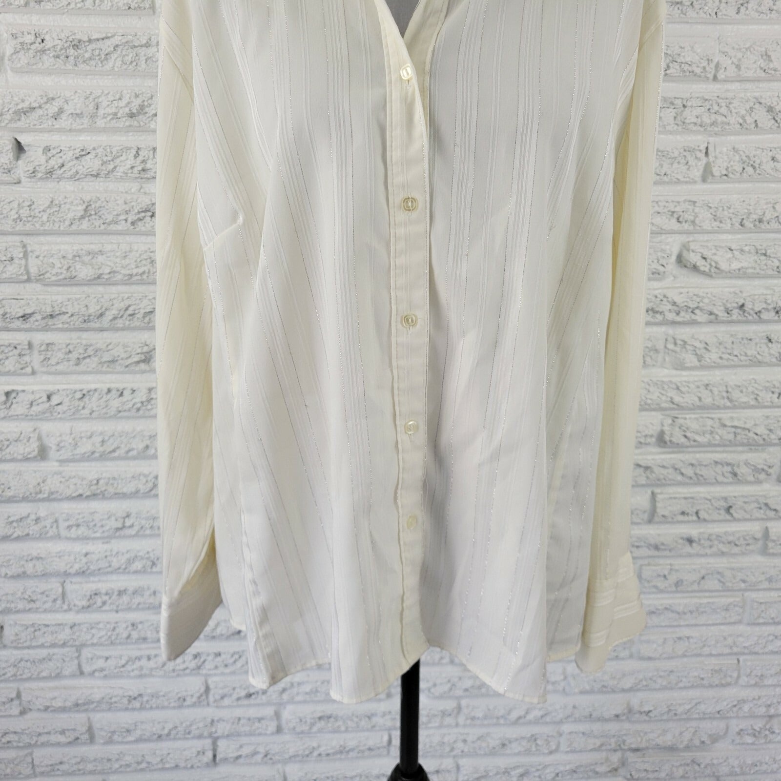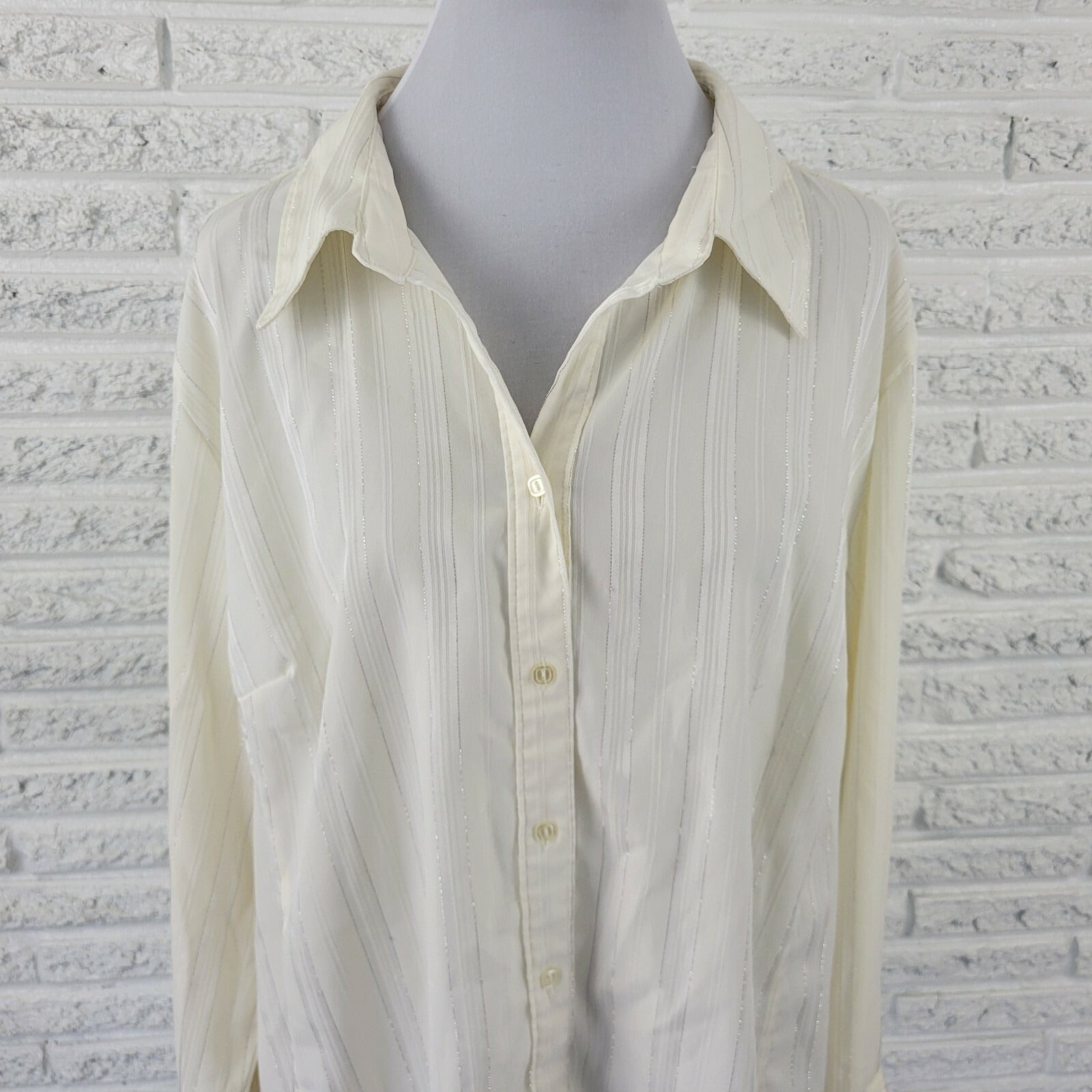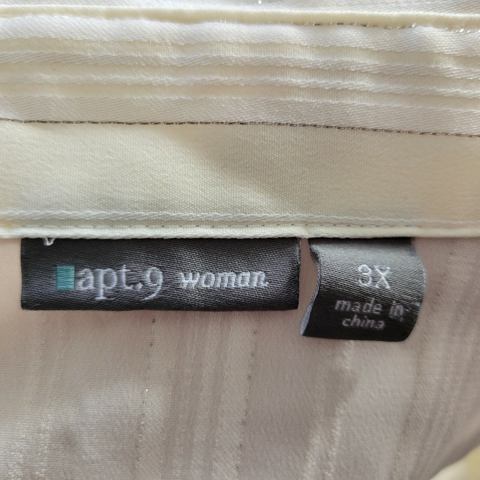 Apt 9 Womens Shirt 3X Plus Button Up Long Sleeves White Striped Metallic Office