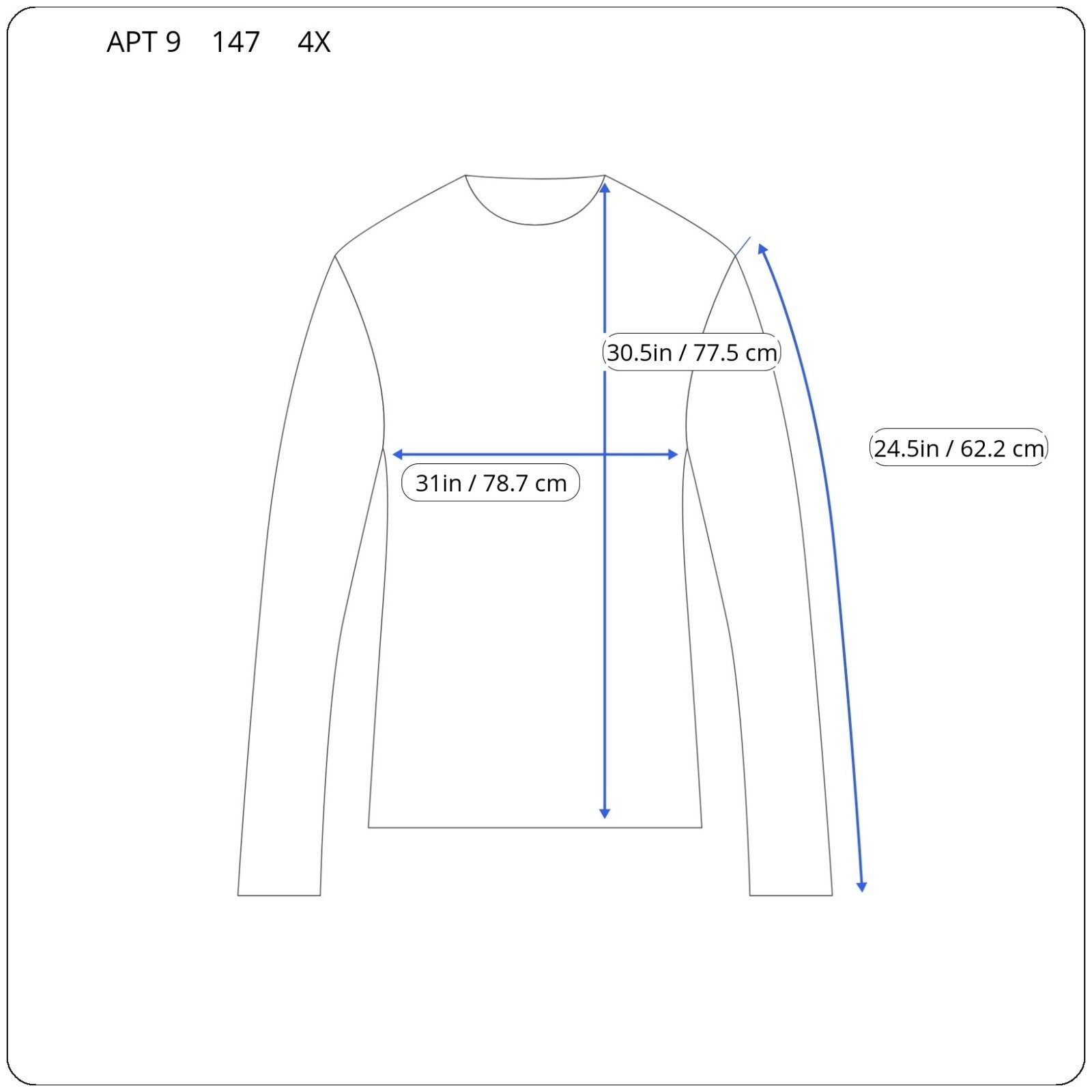 The Apt 9 Women's Sweater in size 4X Plus is a comfortable and stylish pullover made from a polyester blend fabric. It features a solid blue marled design, long sleeves, a tight-knit style, and a round neckline. This sweater is perfect for casual wear or travel, with a regular fit and stretch for added comfort. Easy to care for with machine washable instructions, this versatile sweater can be worn in all seasons, making it a must-have addition to any wardrobe.