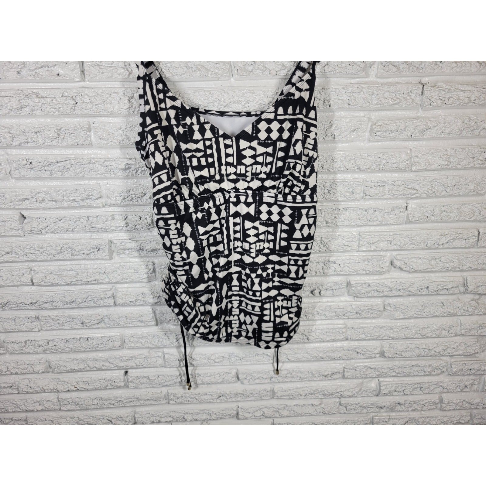 Apt 9 Womens Swim Top 3X Black Geometric Adjustable Wide Strap Beach Pool
