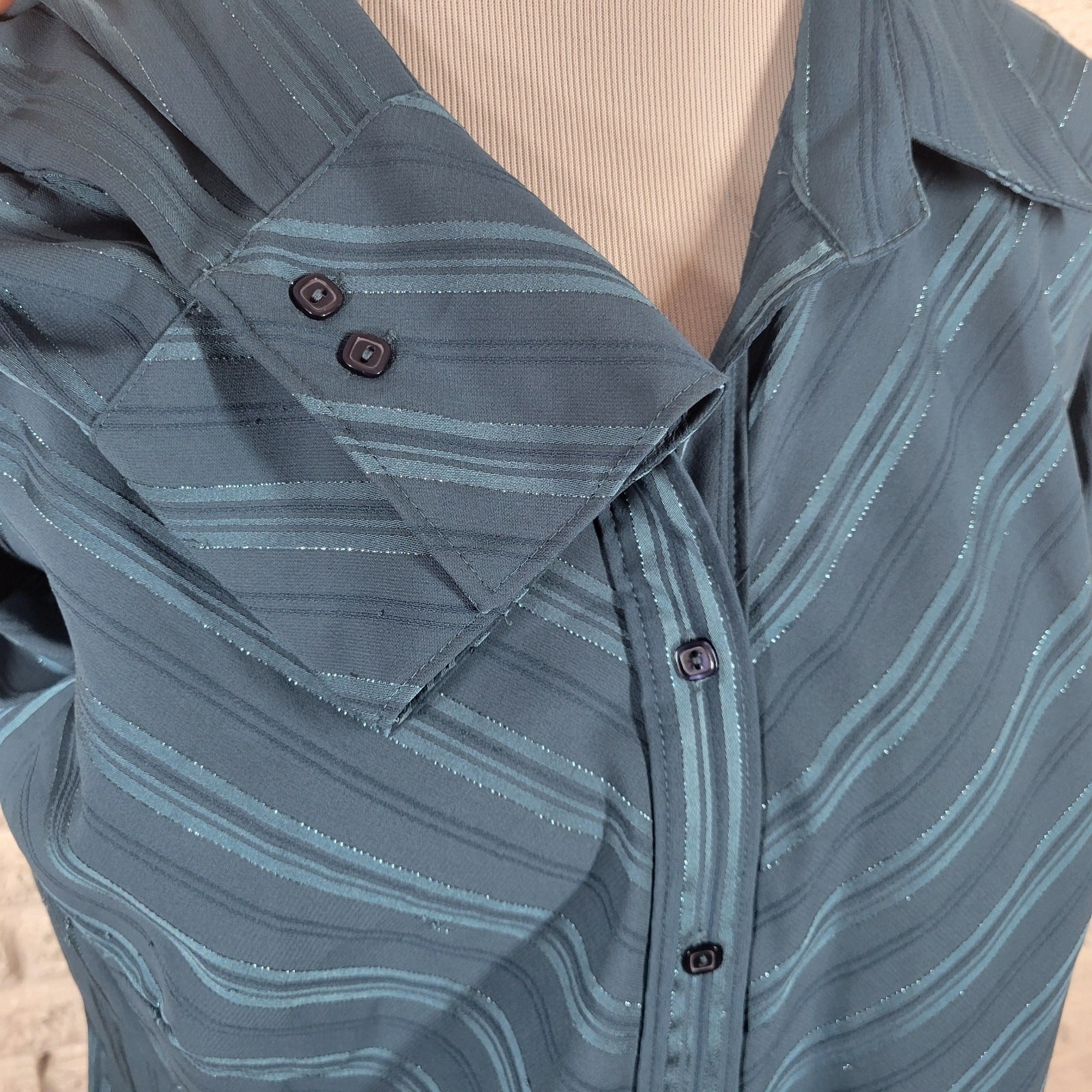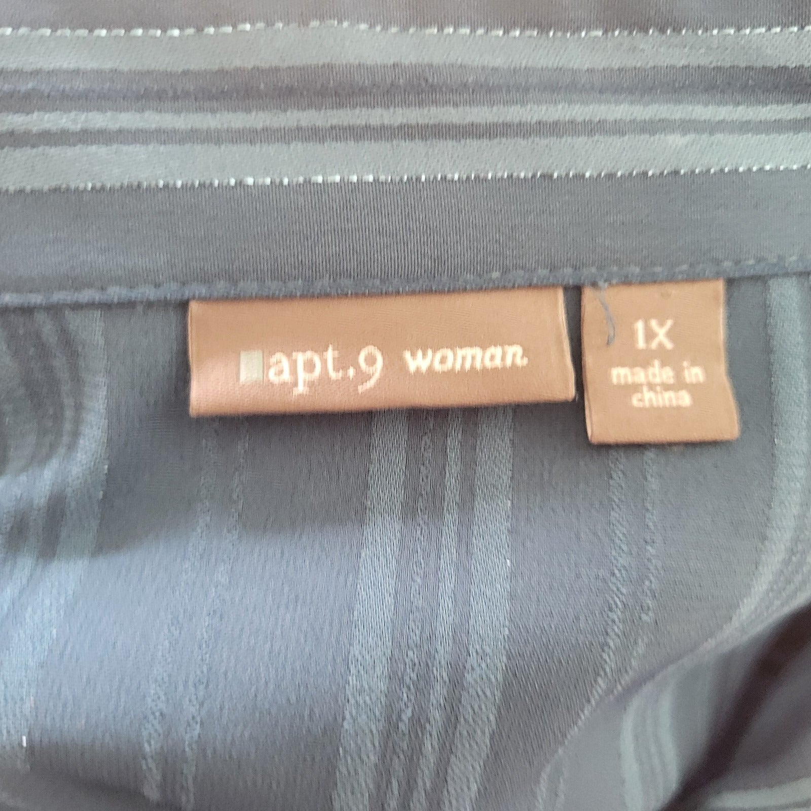 Apt 9 Womens Top 1X Plus Long Sleeve Blue Stripe Poly Blend Silver Metallic