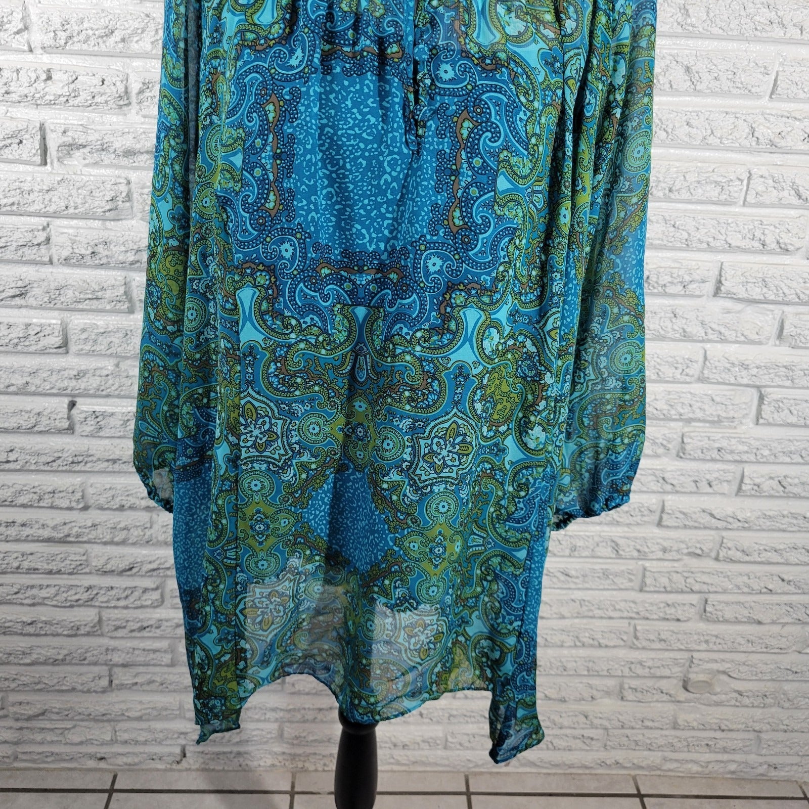 Apt 9 Womens Top 2X Plus 3/4 Sleeve Blue Geometric Sheer with Cami Lightweight