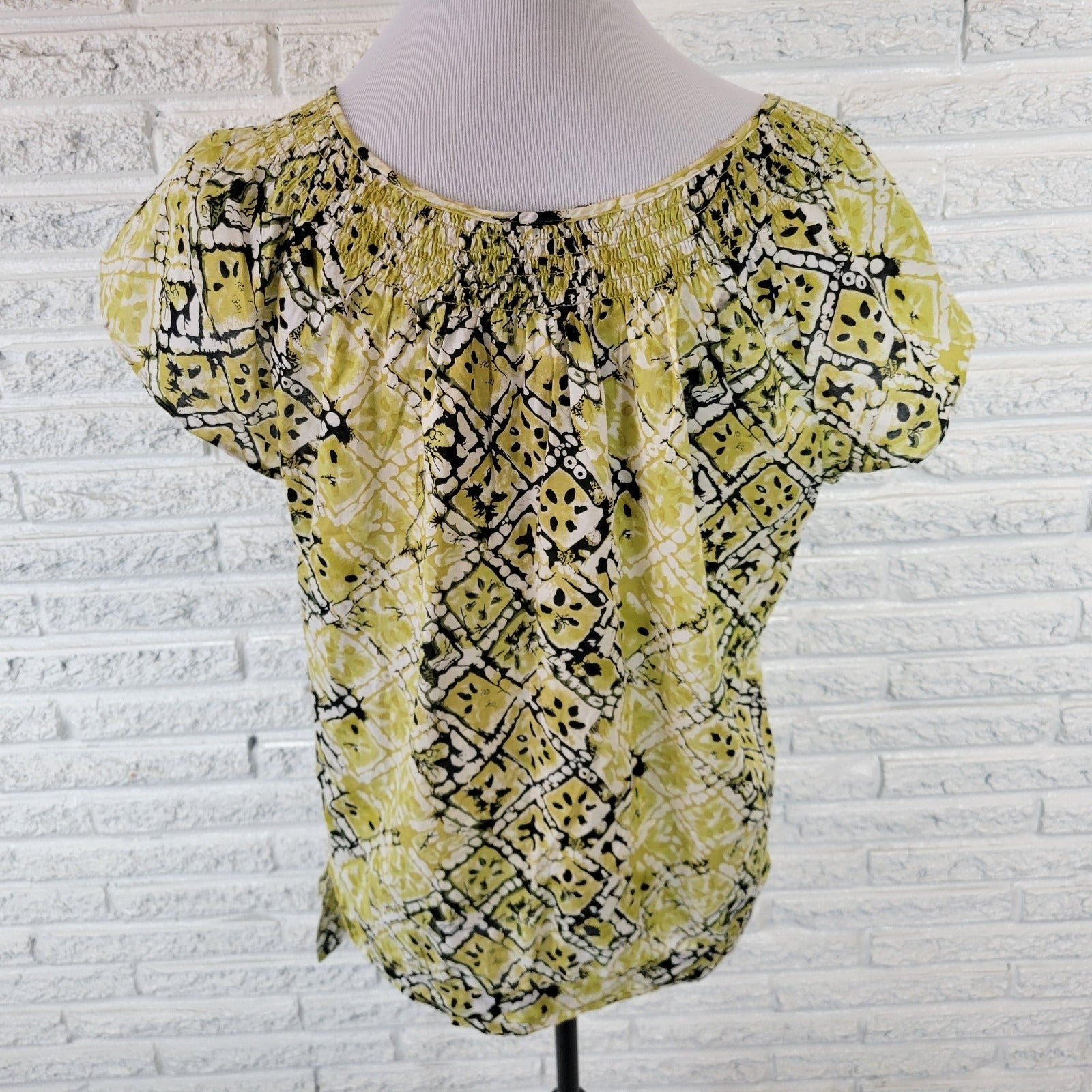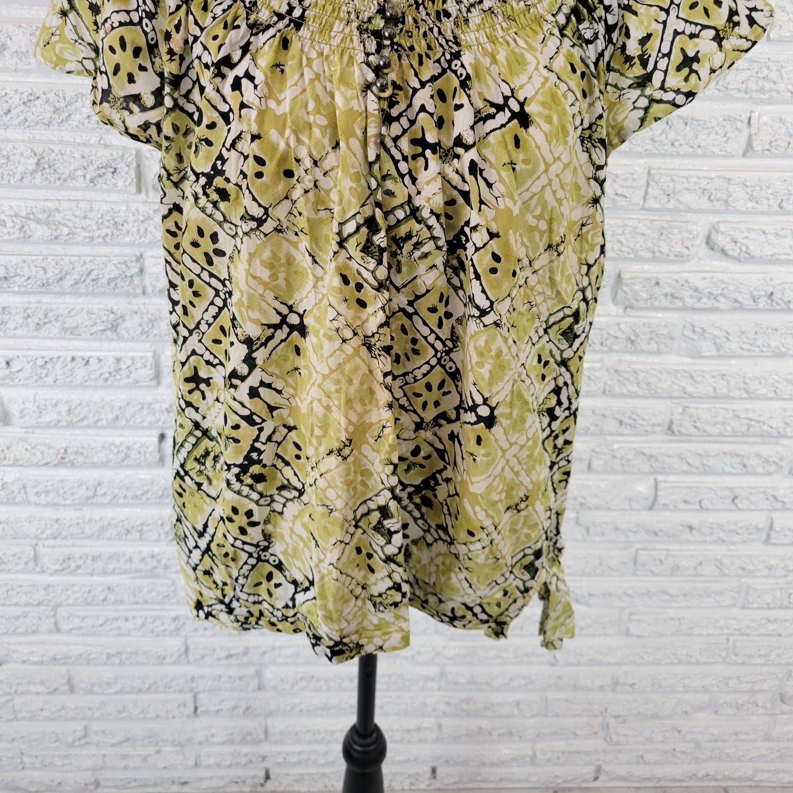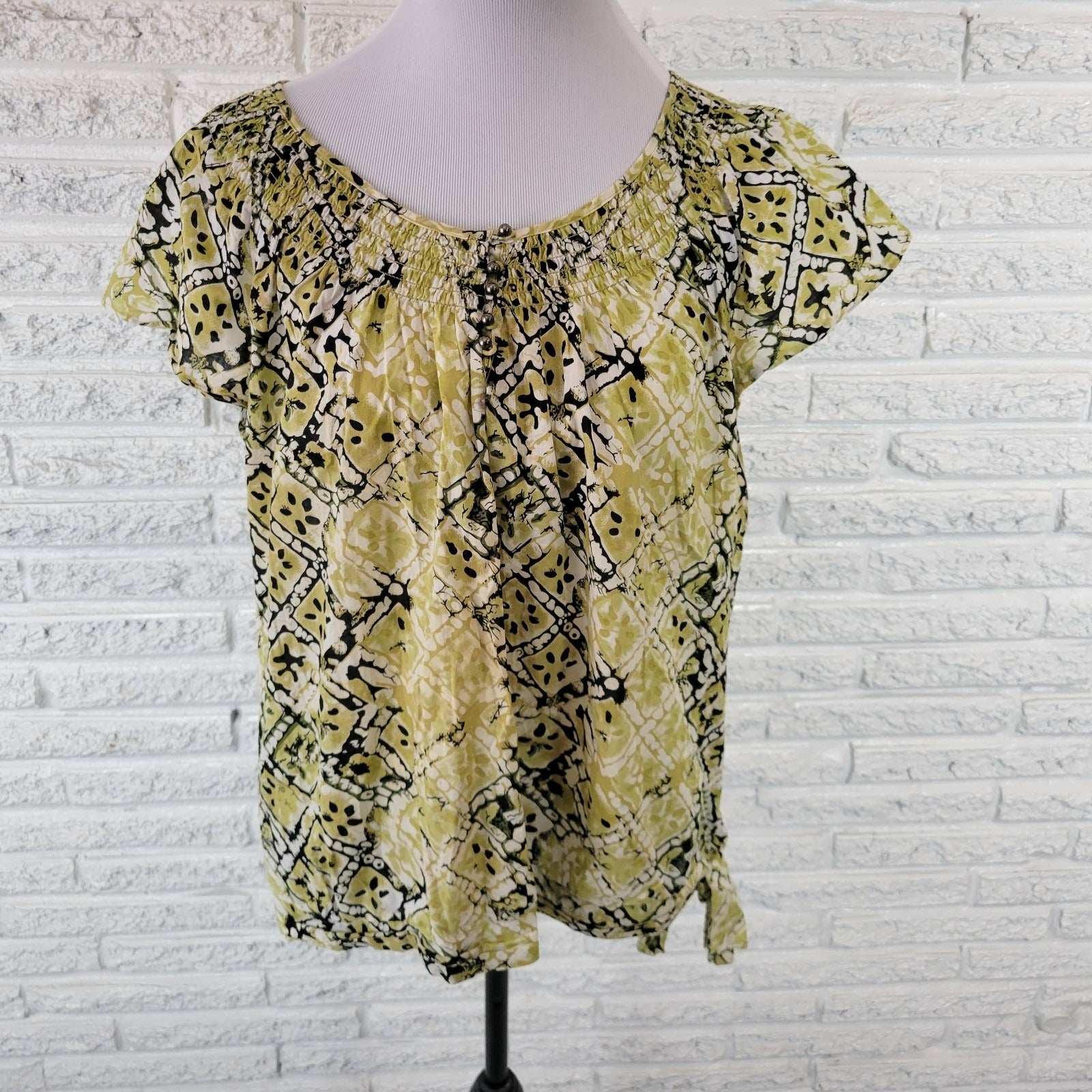 Apt 9 Womens Top Extra Large Cap Sleeve Green Geometric Smocked Tied Hem Casual