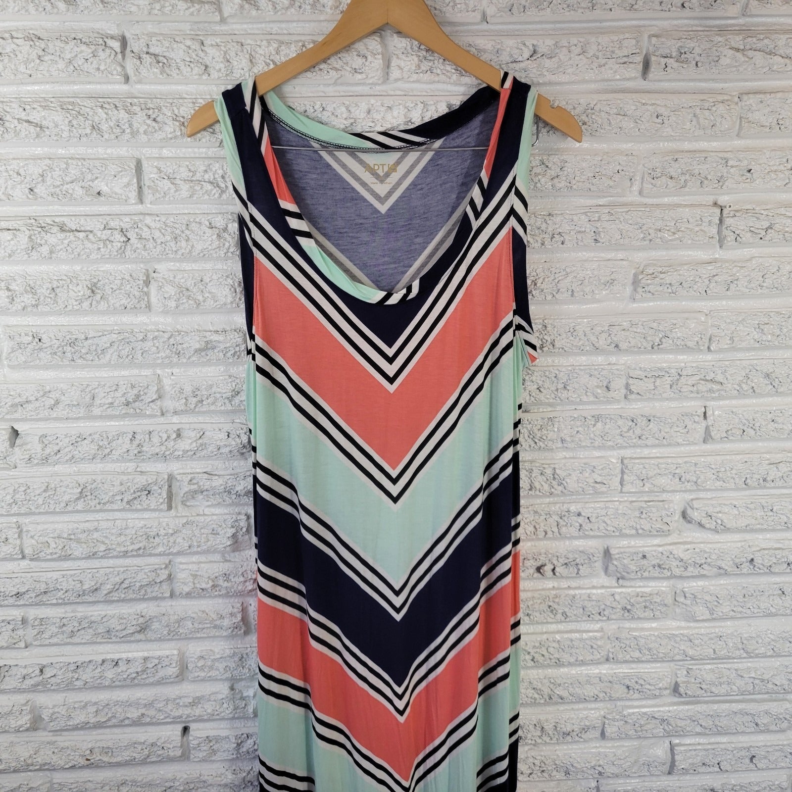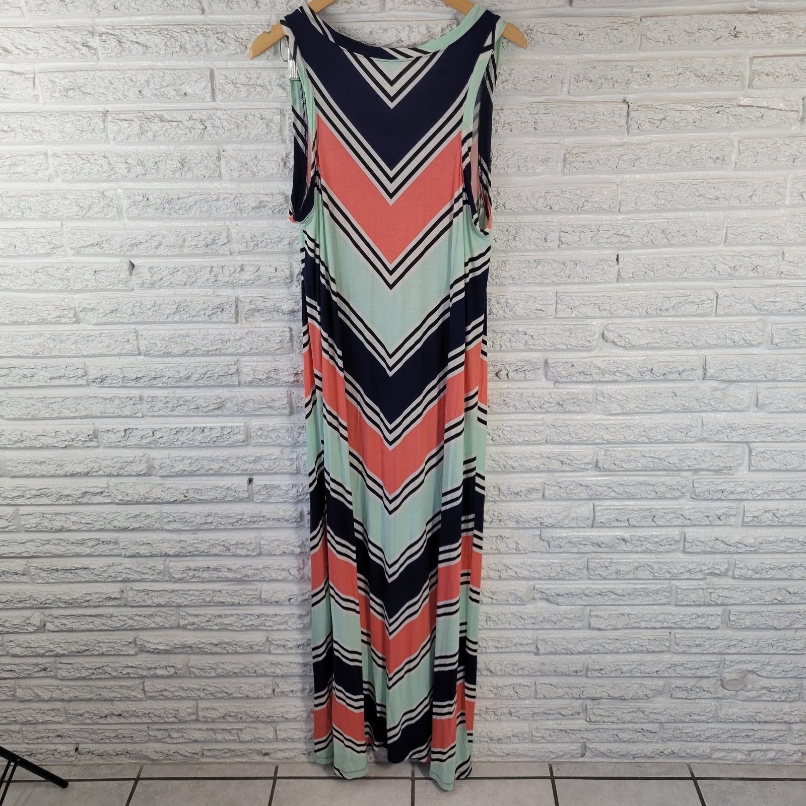 Apt. 9 XL Blue Pink Floral Sleeveless Maxi Dress Rayon Spandex Stretch Casual