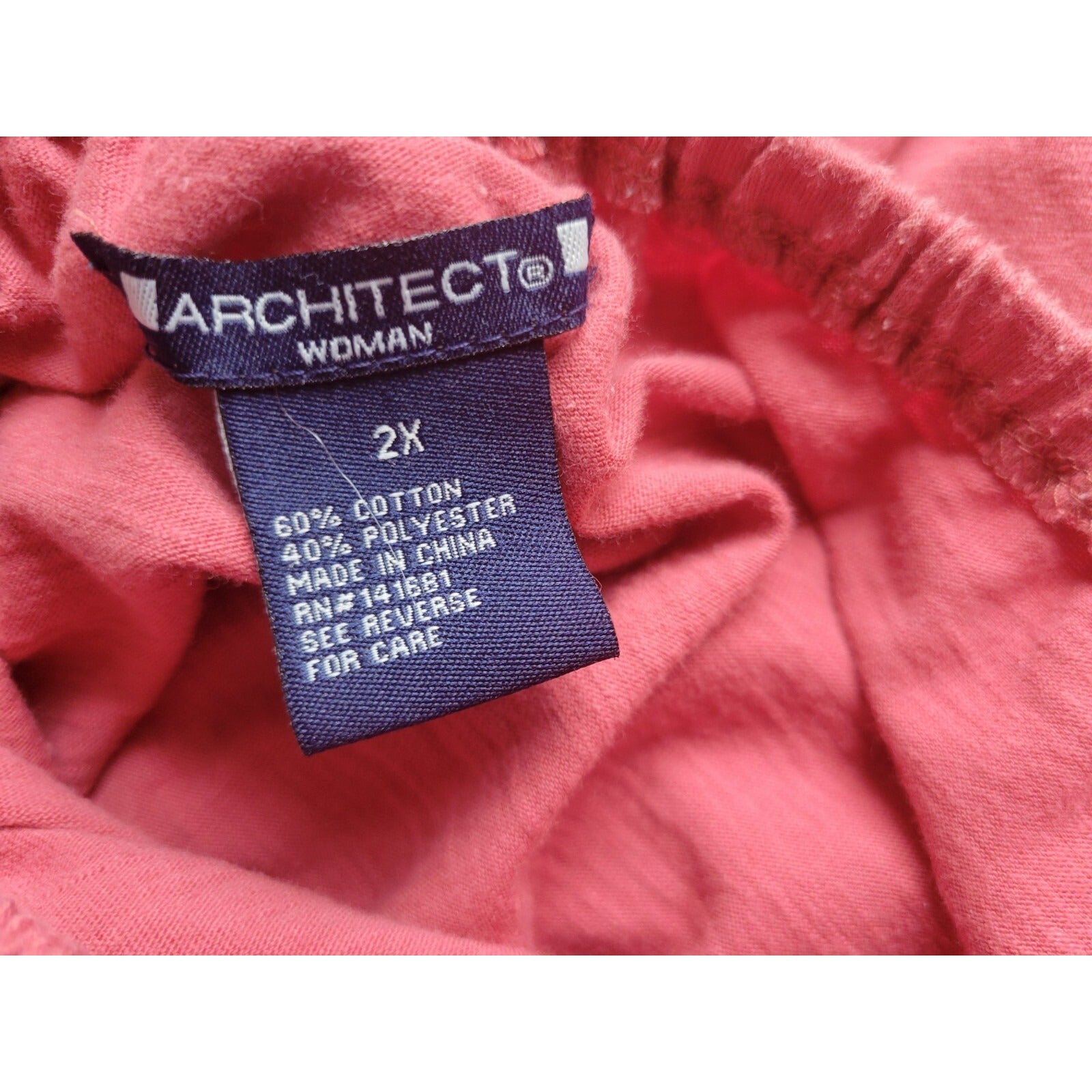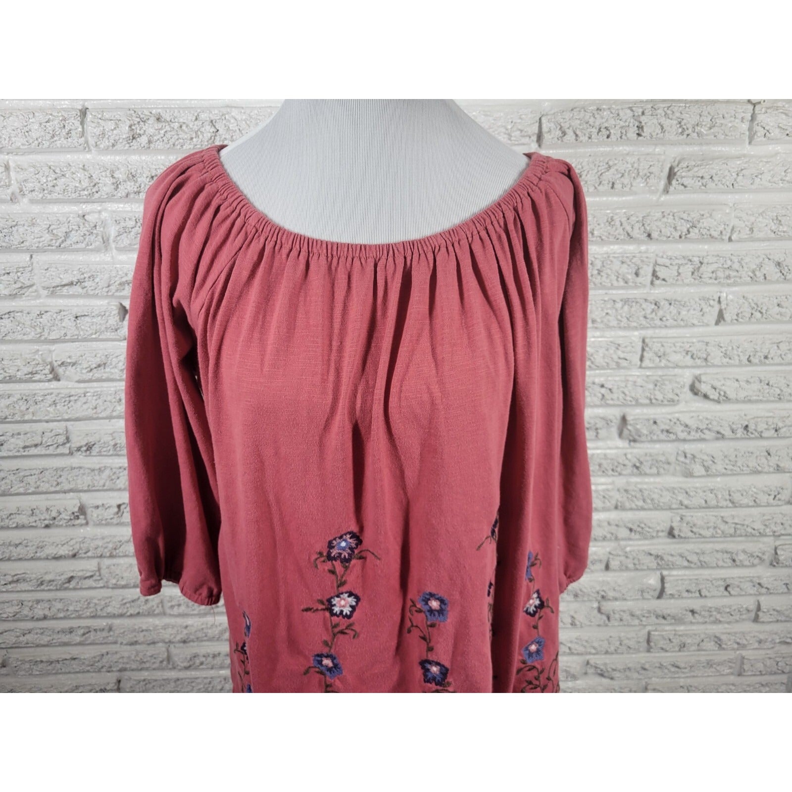 Architect Womens Top 2X Plus 3/4 On Off Shoulder Muted Red Floral Embroidery