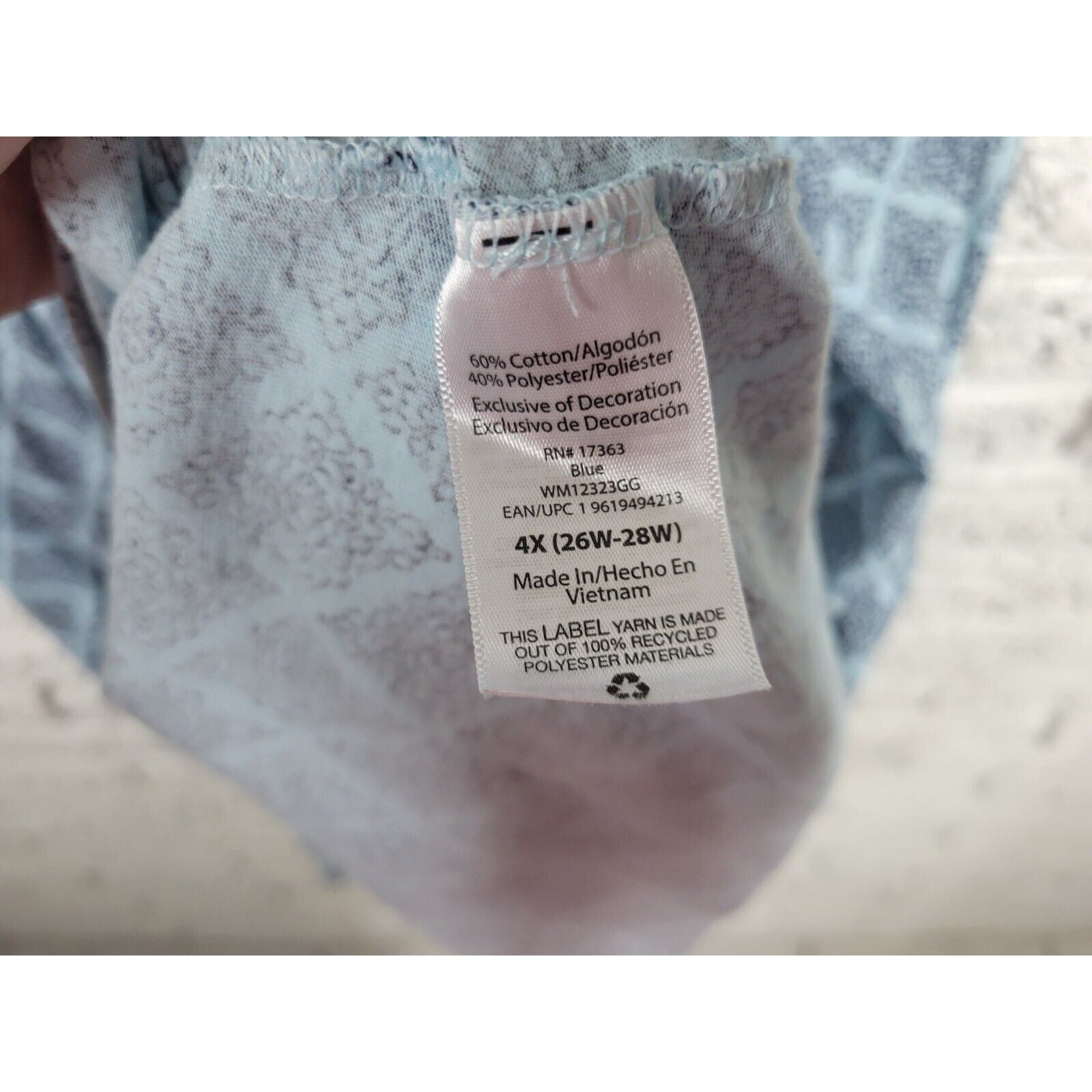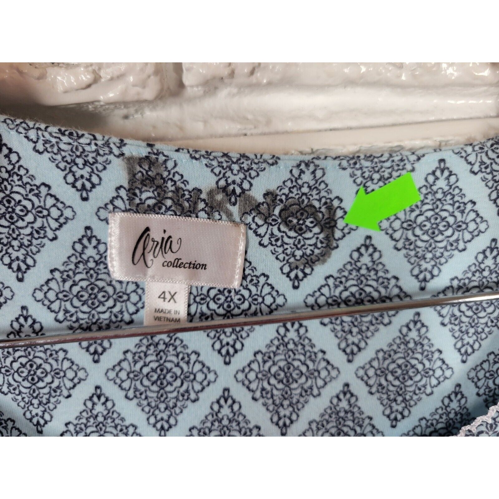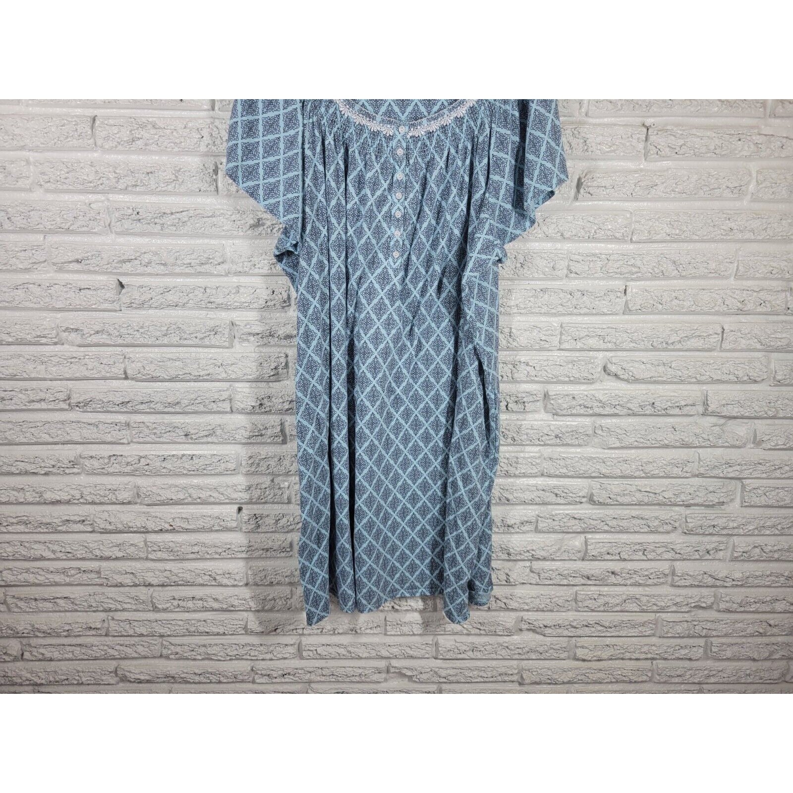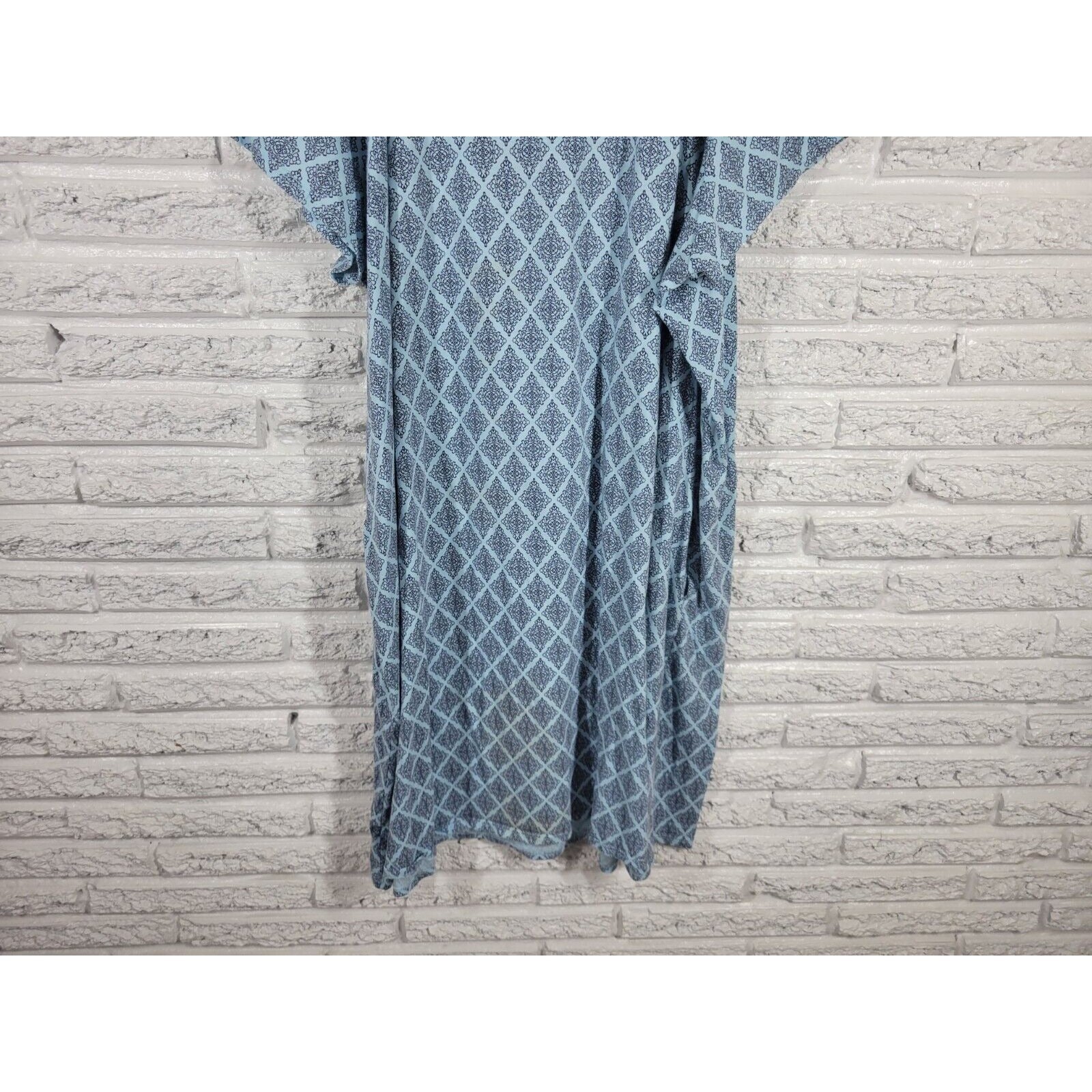 Aria Women Robe 4X Plus Blue Geometric Quarter Button Pockets Kaftan Lightweight