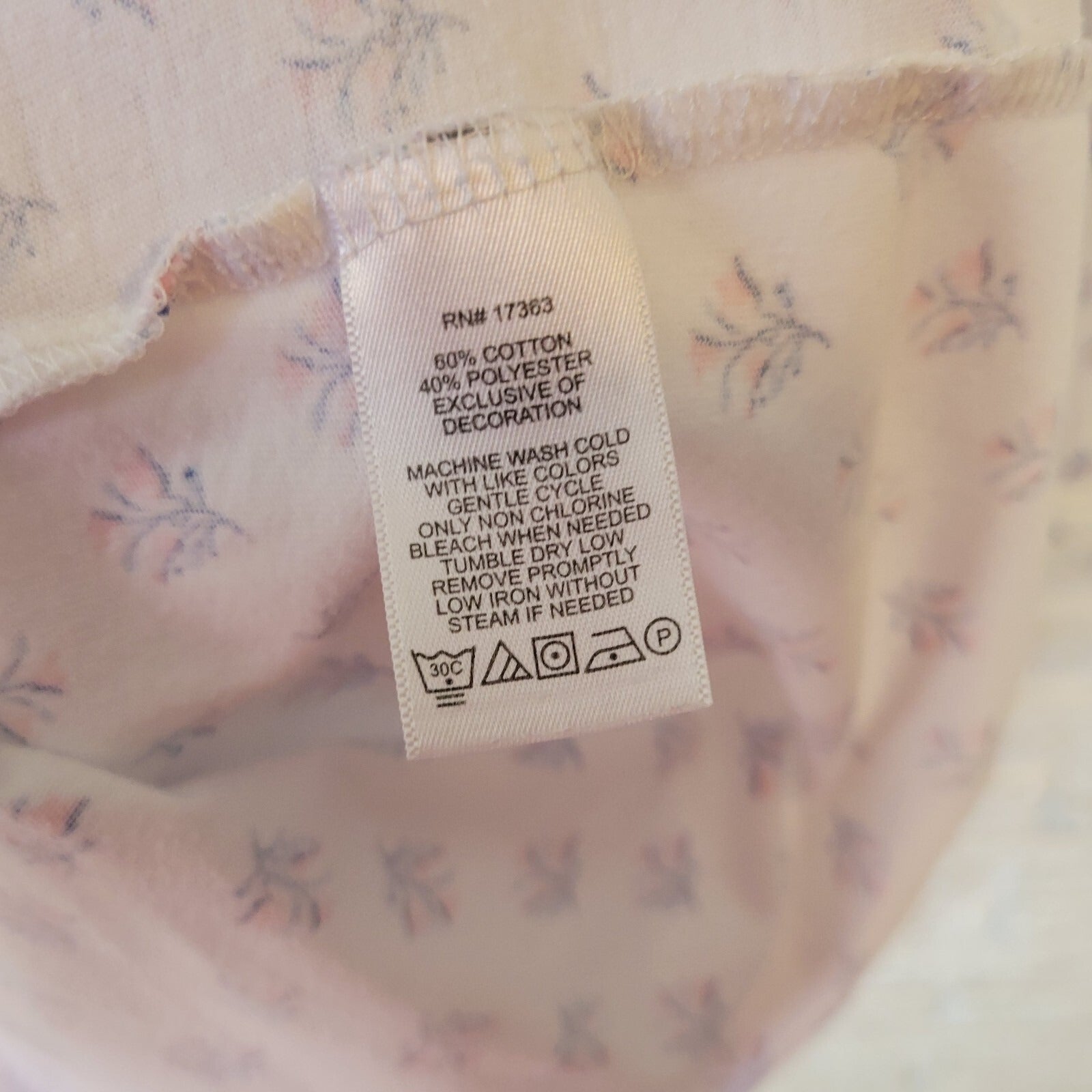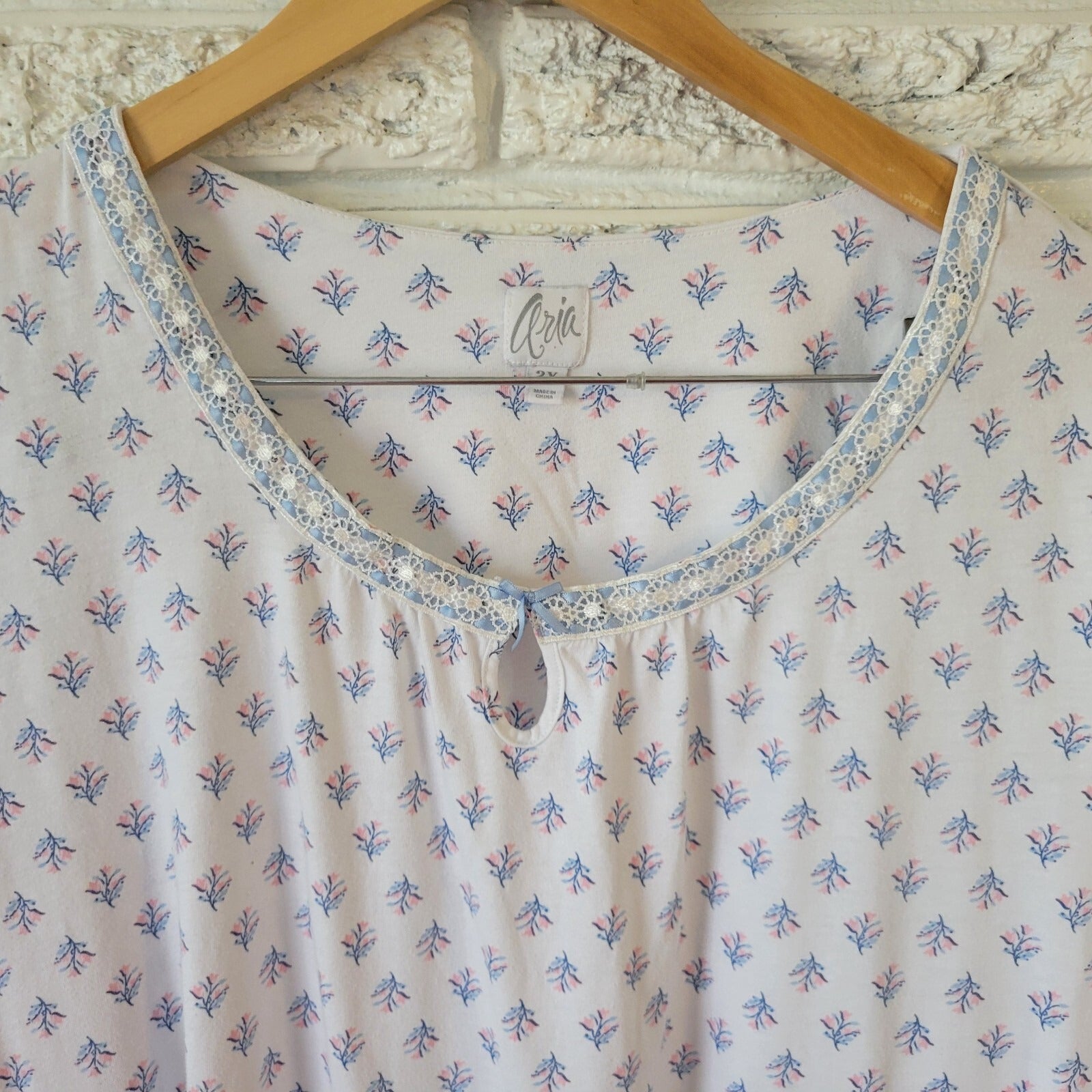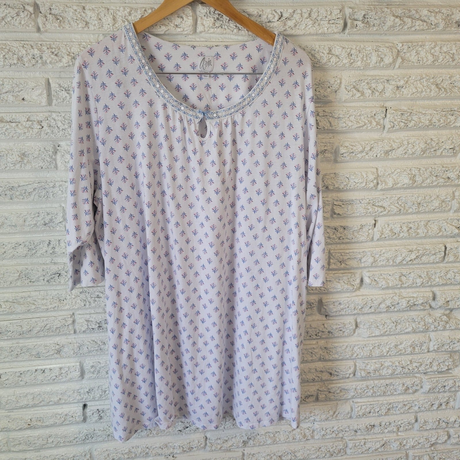 Aria Womens Pajama Top 3X Plus 3/4 Sleeve Blue Pink Floral Lightweight Lace Trim