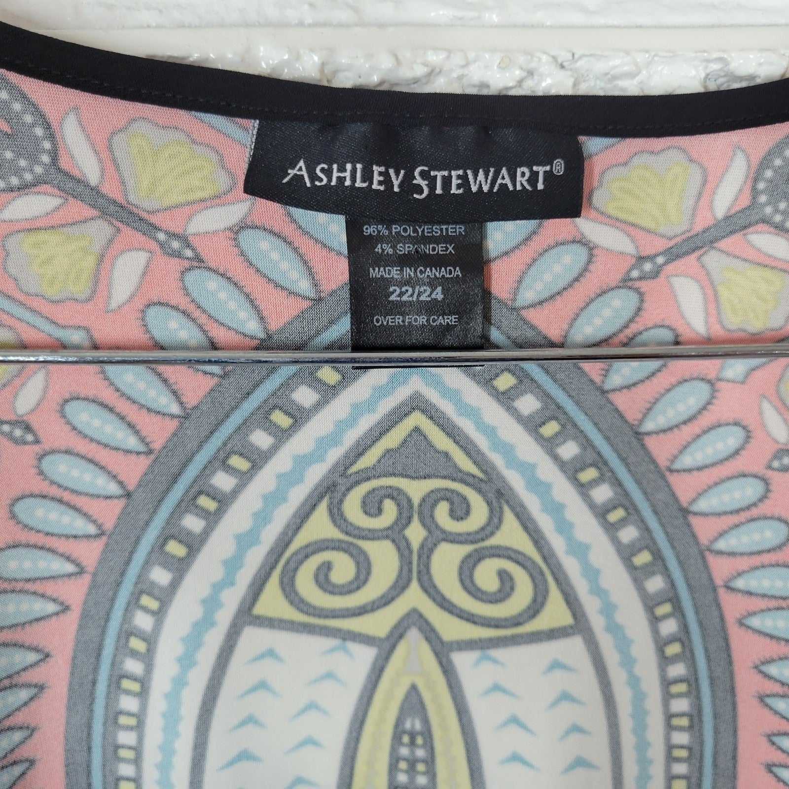 Ashley Stewart Women Dress 22 24 Plus Lagenlook Midi Layer Overlay Red Geometric