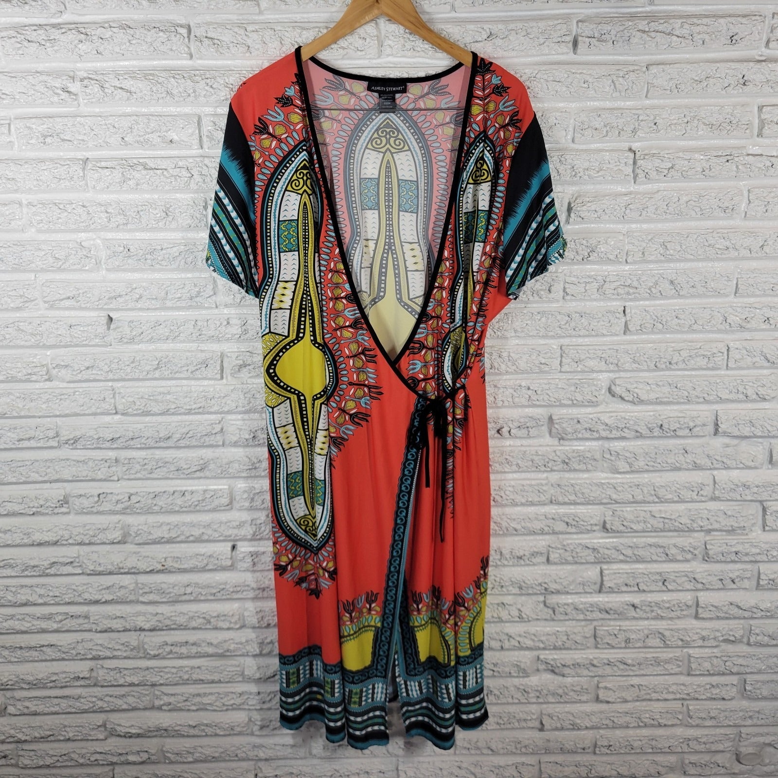 Ashley Stewart Women's 22/24 Plus Red Geometric Stretch Short Sleeve Midi Dress