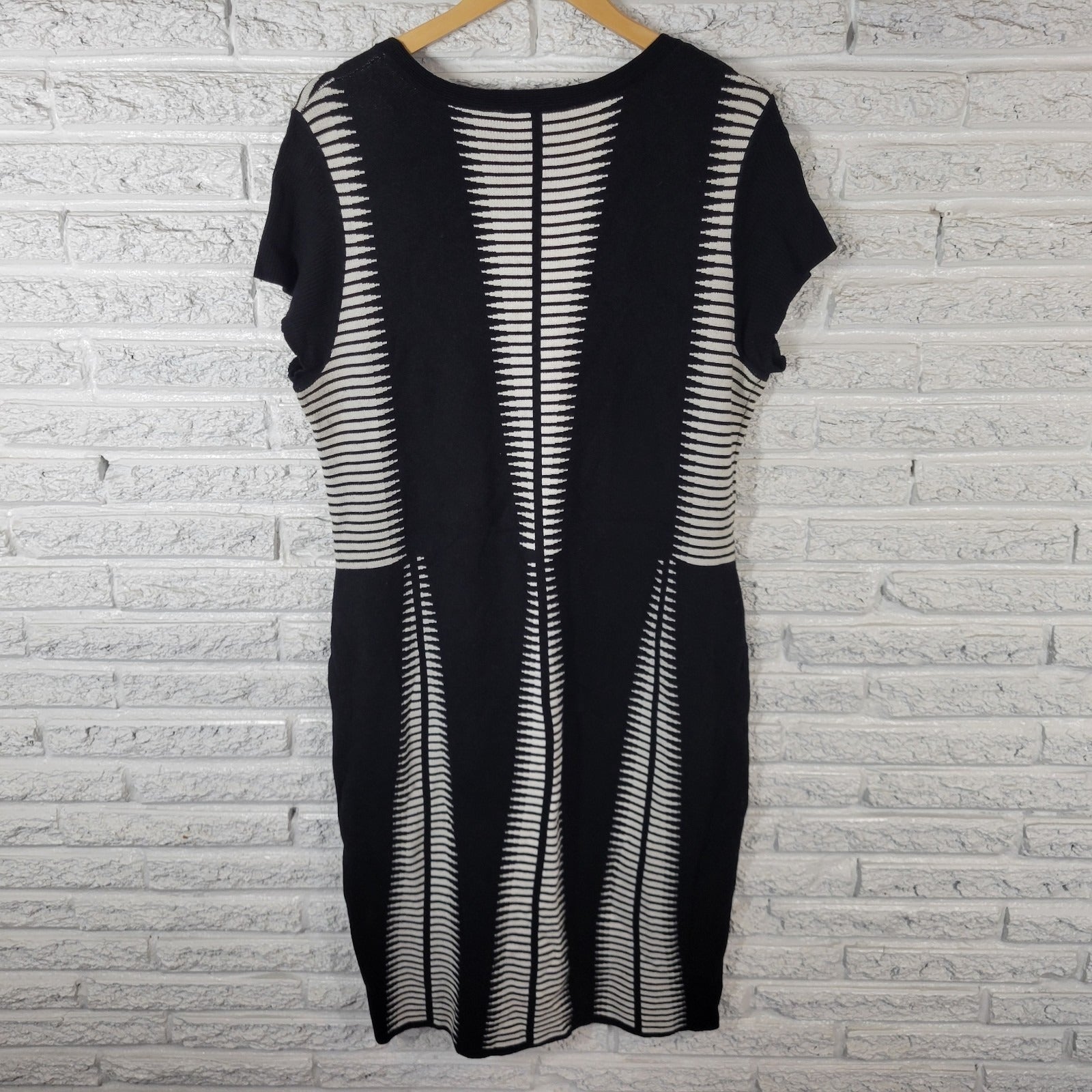 Ashley Stewart Womens Dress 18 20 Plus Sweater Knit Black Geometric Comfy Casual