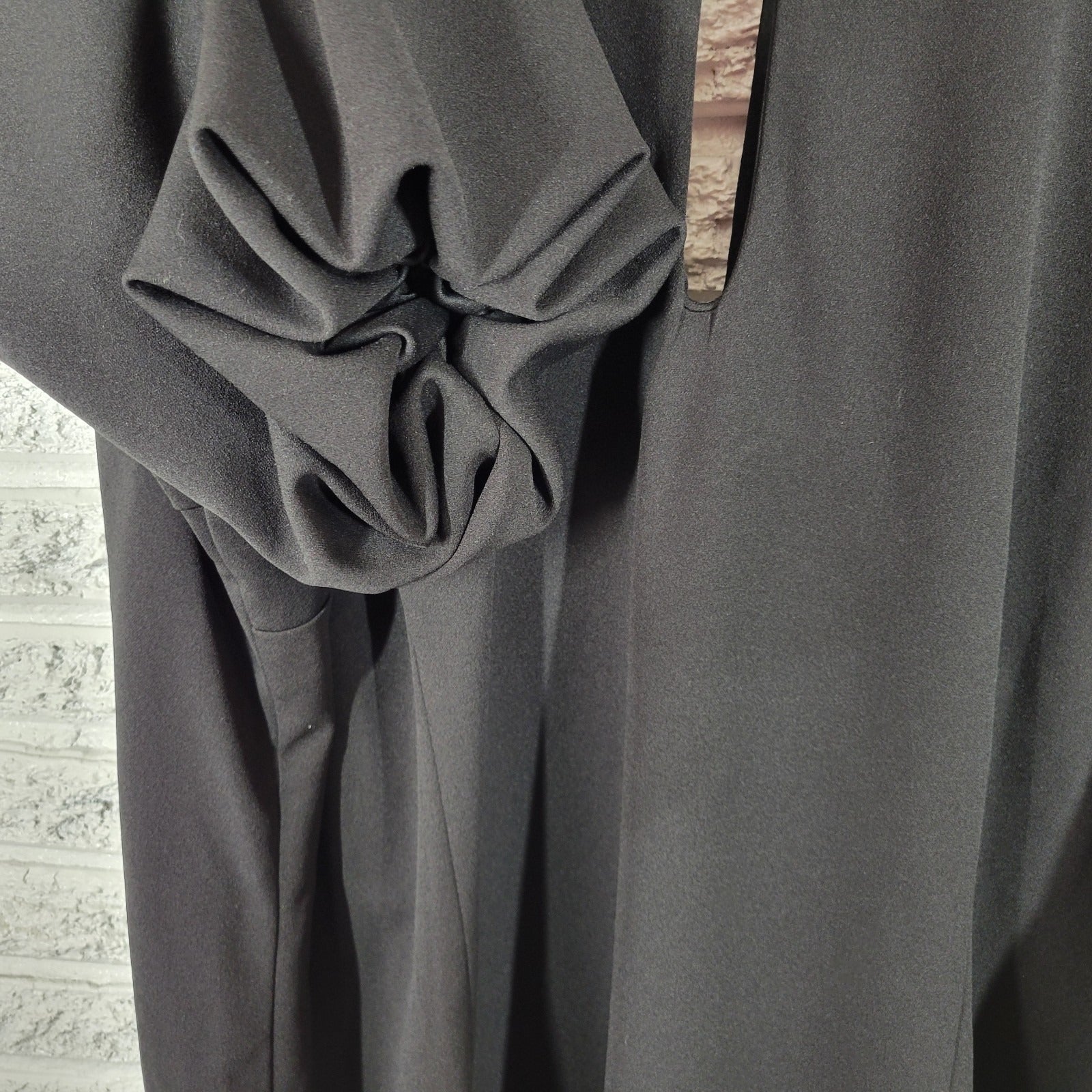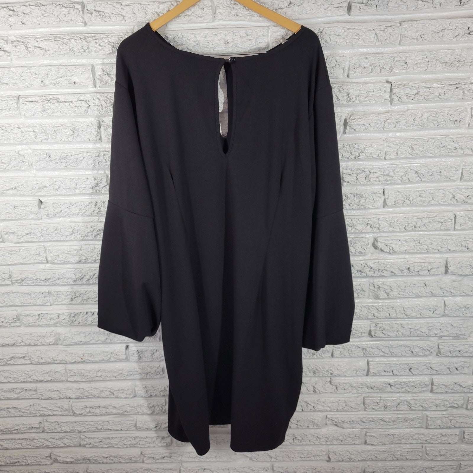 Ashley Stewart Womens Dress 30 Plus Gathered Sleeve Black Keyholes Poly Blend