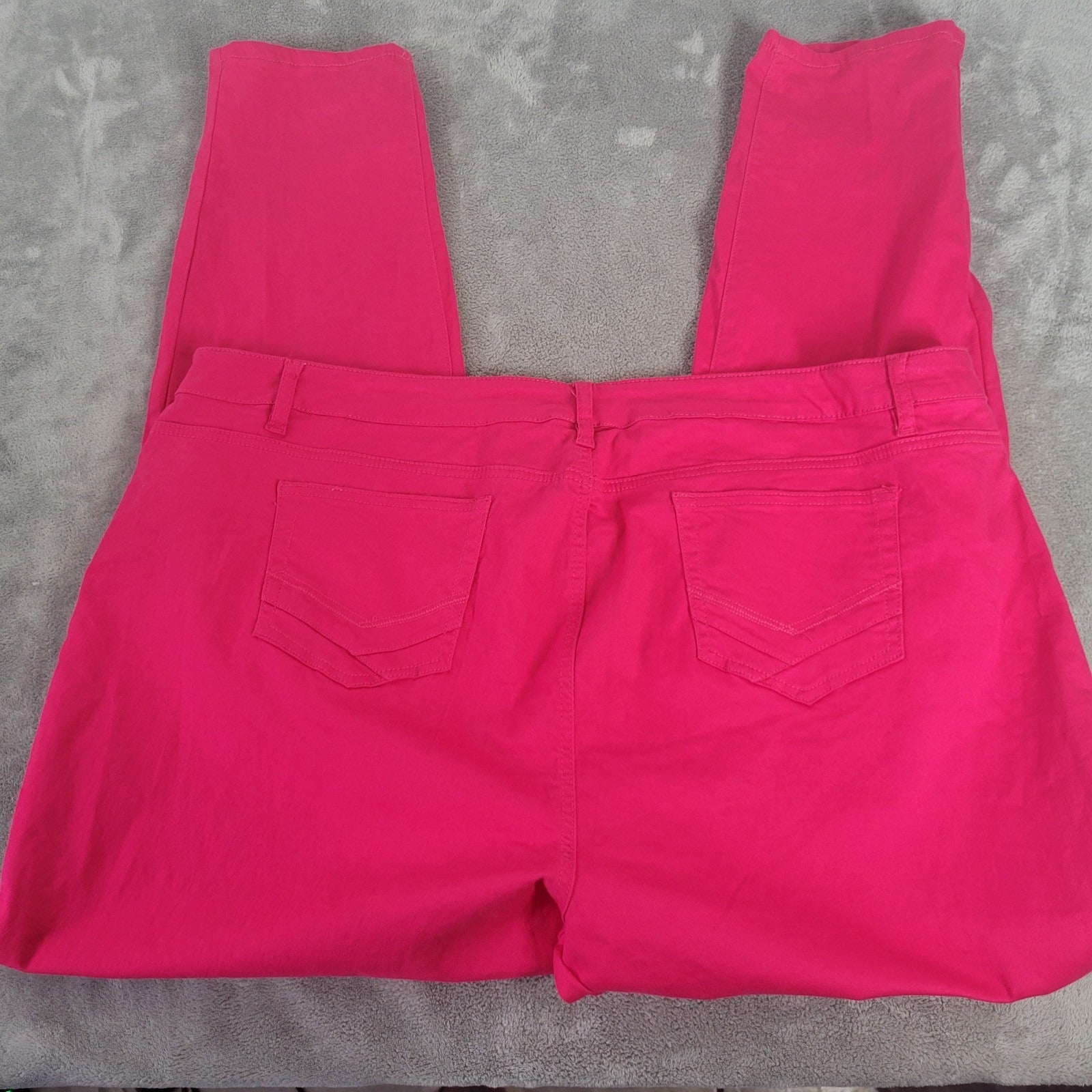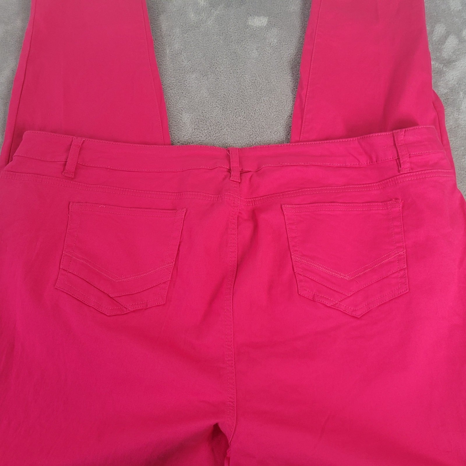 The Ashley Stewart Women's Jeans in size 26 Plus Straight Leg in Pink Denim are a stylish and comfortable choice for plus-size women. Made from a cotton blend denim fabric with a regular fit, these jeans feature a zip fly closure, elastic waist for added comfort, and a 5-pocket design for functionality. With a stylish solid pink color and a classic straight leg style, these jeans are machine washable and suitable for all seasons. Perfect for adding a pop of color to your wardrobe while maintaining a flattering and comfortable fit.