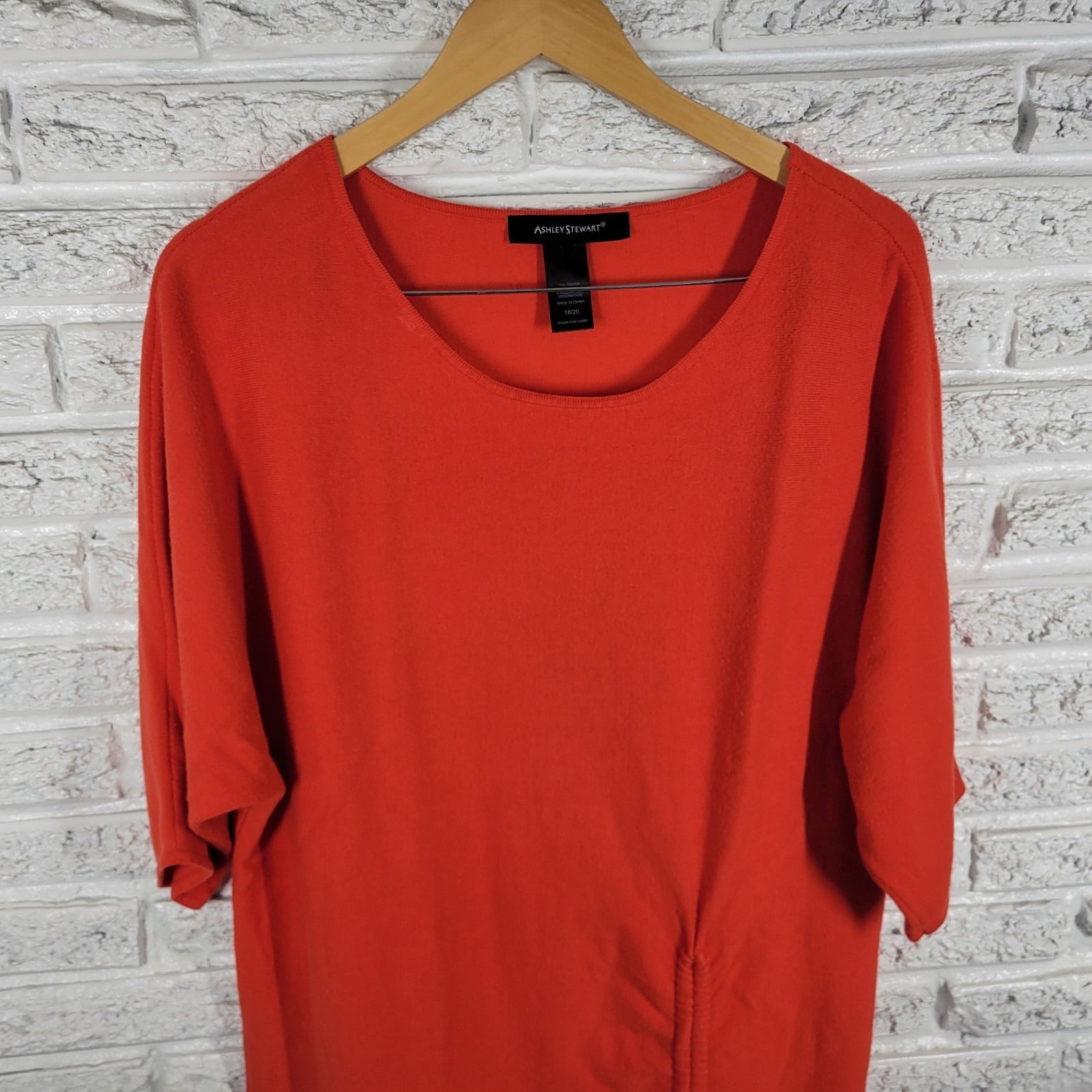 Ashley Stewart Womens Top 18 20 Plus Tunic Swim Coverup Orange Ruched Soft Comfy