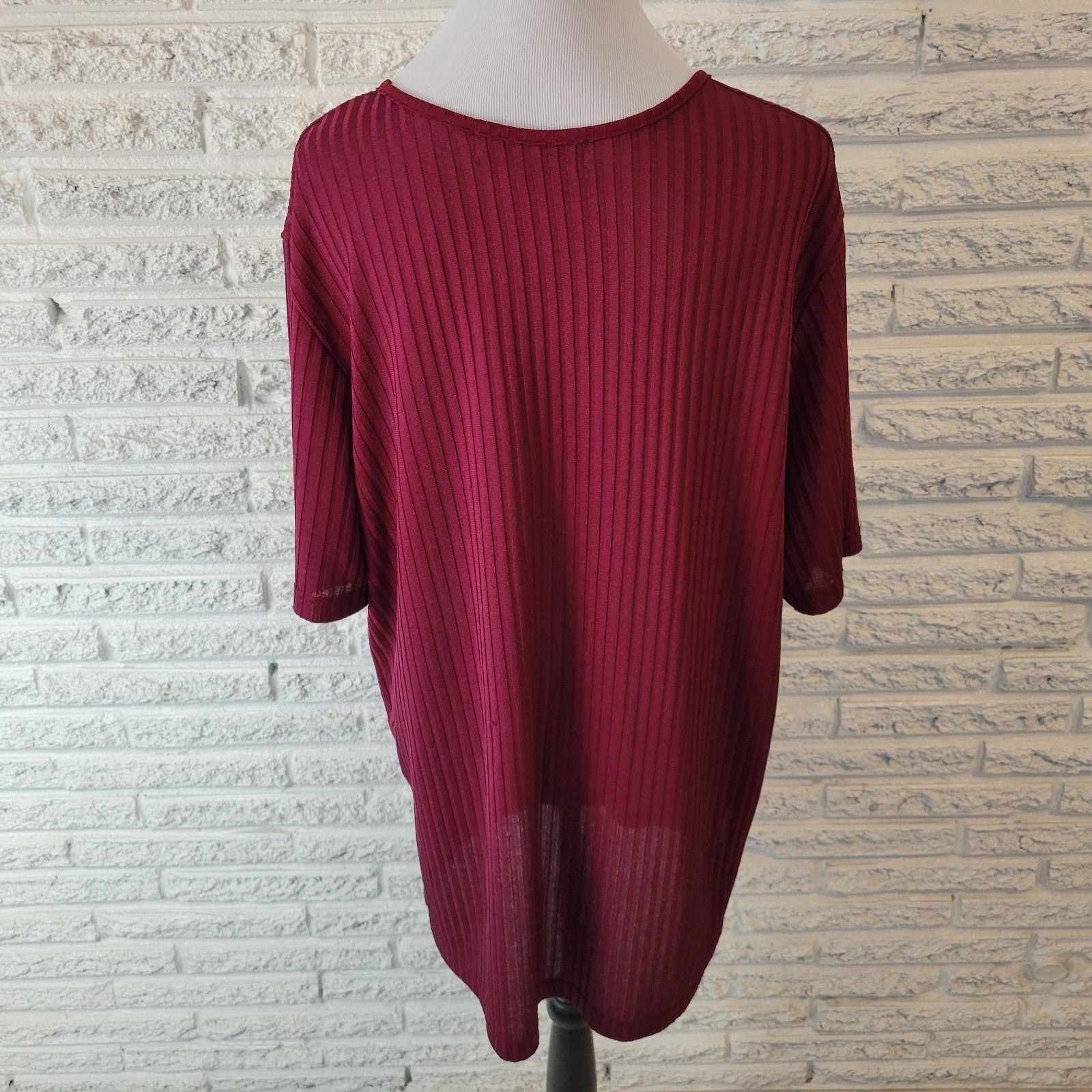 Ashley Stewart Womens Top 18 20 Short Sleeve Burgundy Sheer Ribbed Lightweight