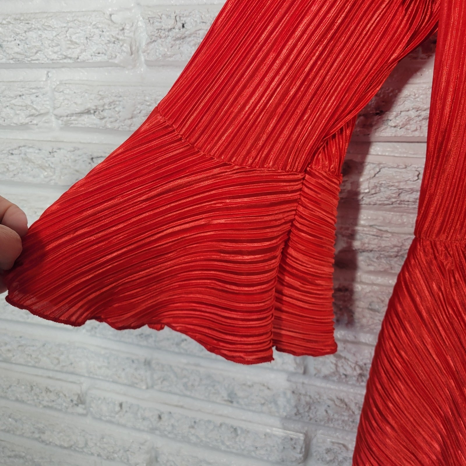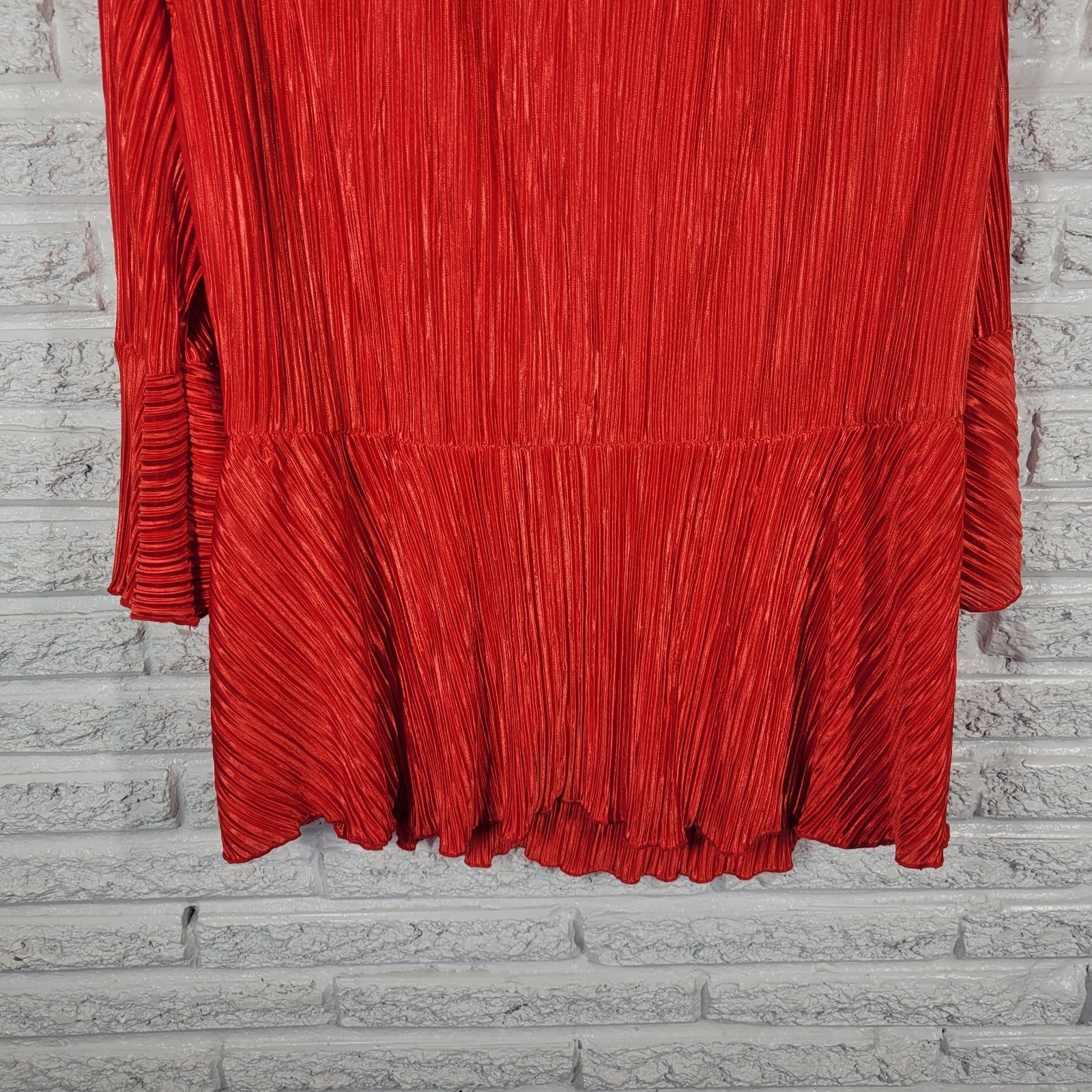 Ashley Stewart Womens Top 26 Plus Cold Shoulder Bell Sleeve Red Sheer Crinkle