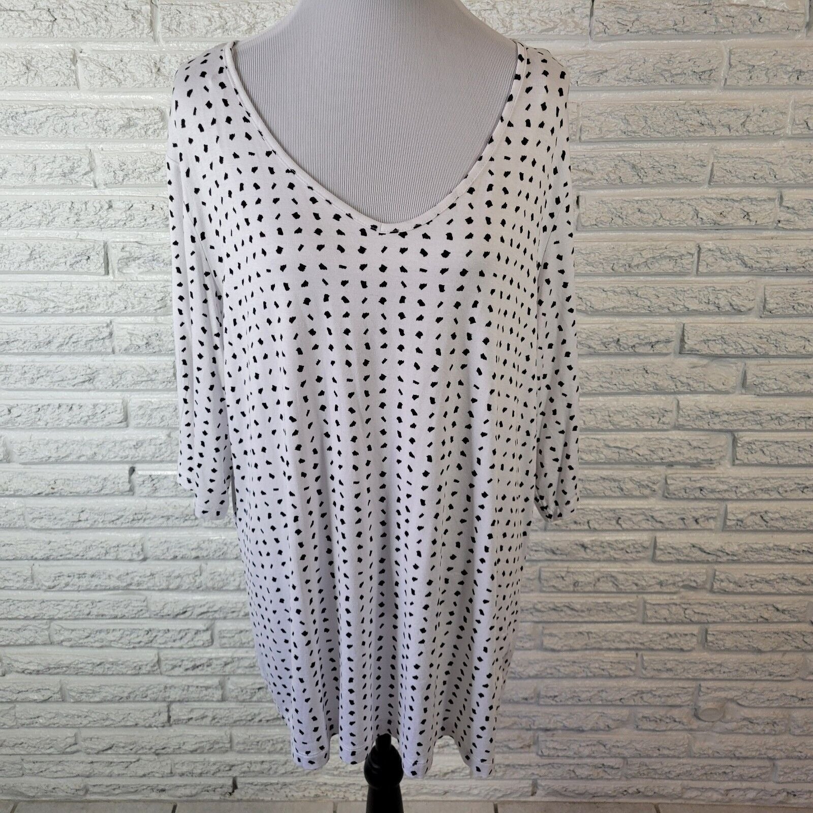 Attention Womens Top 1X Plus Tunic 3/4 Sleeve Black White Patterned Rayon Casual
