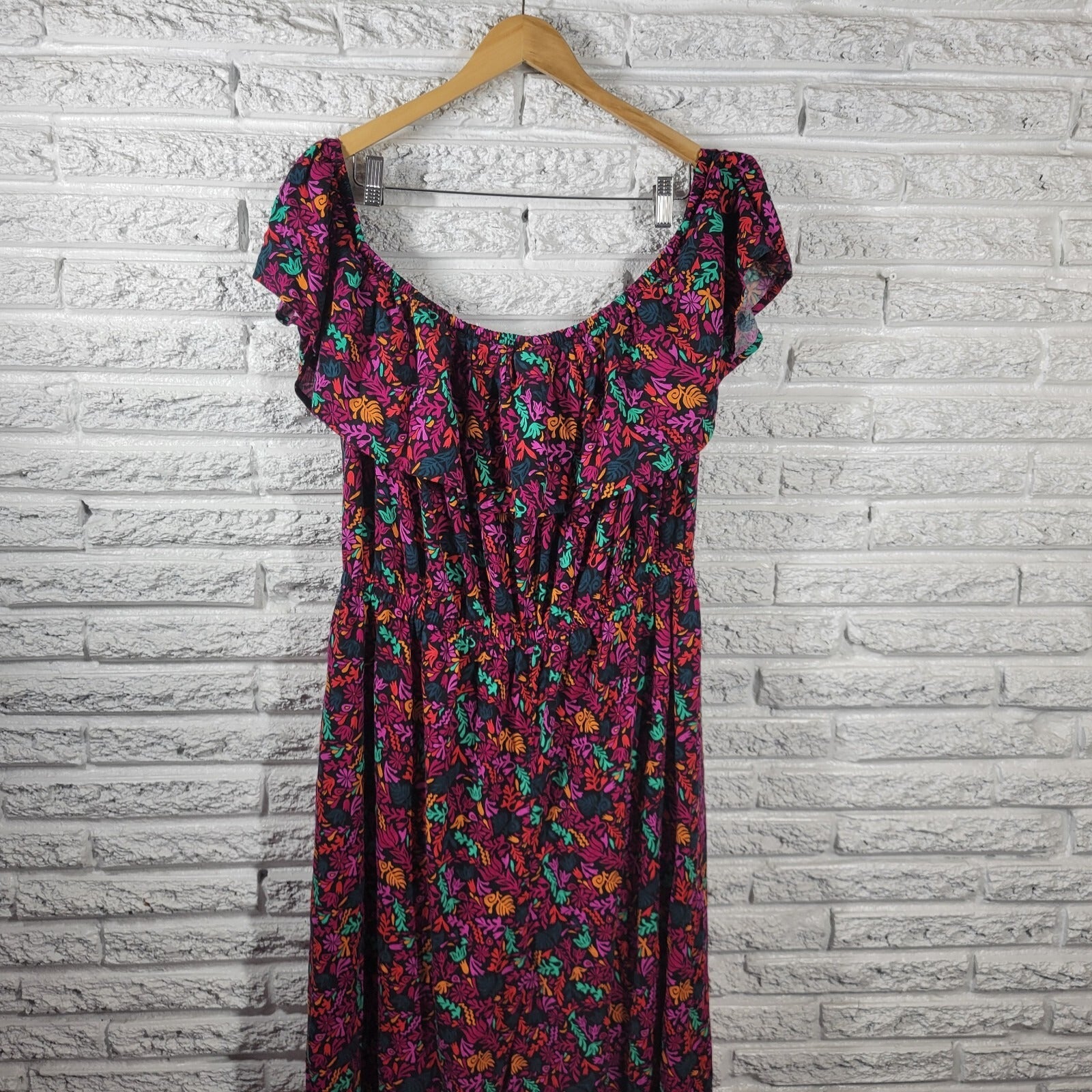 Ava Viv Women Jumpsuit 4X Plus On Off Shoulder Sash Ruffle Pink Floral Pockets