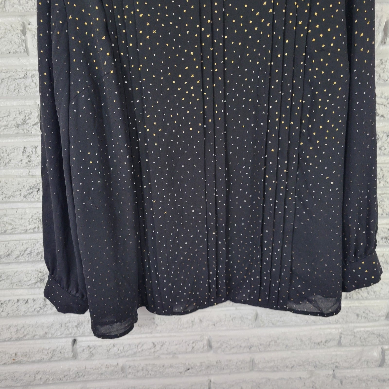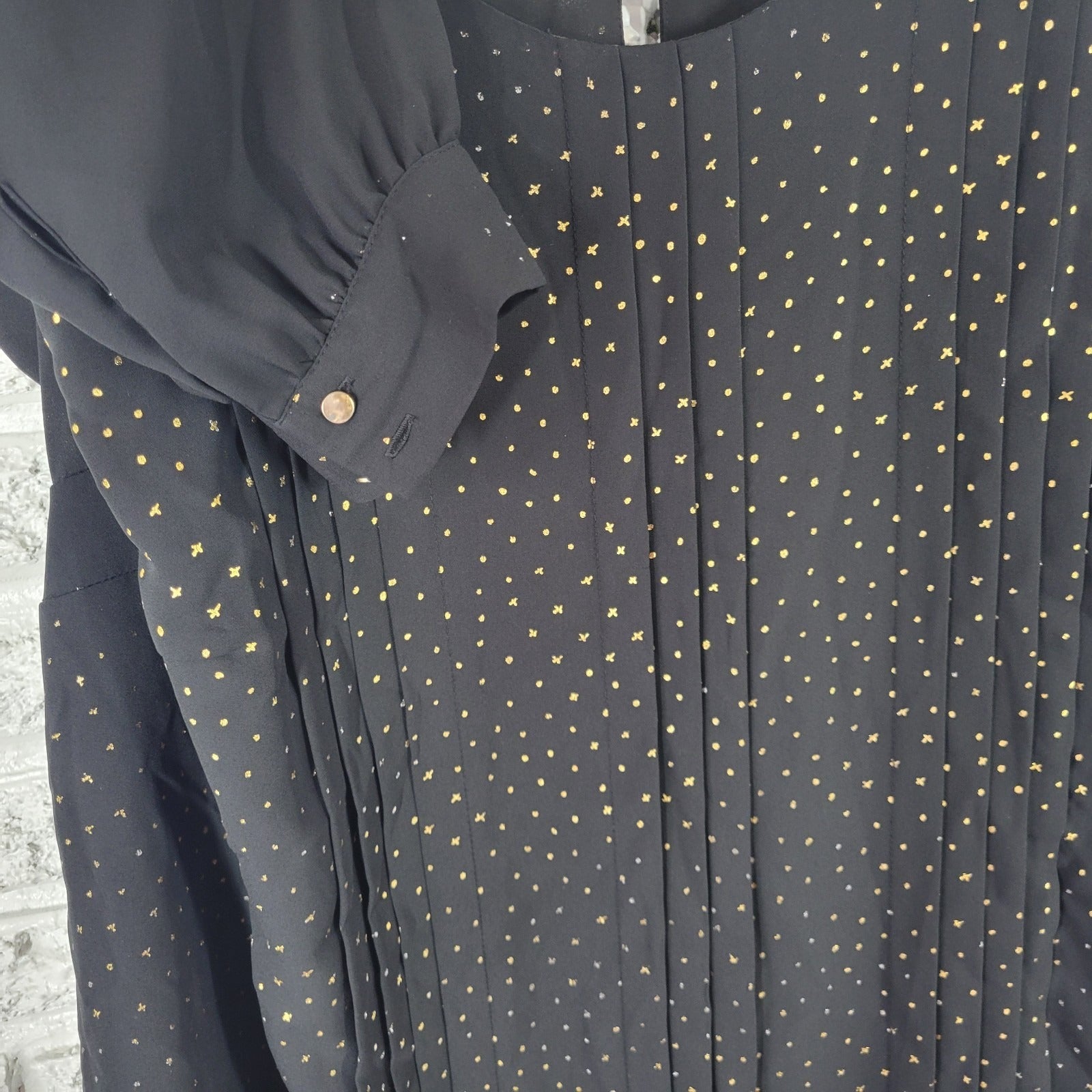 Ava Viv Women Top 2X Plus Tunic Black Gold X's Pintuck Back Keyhole Lined Office