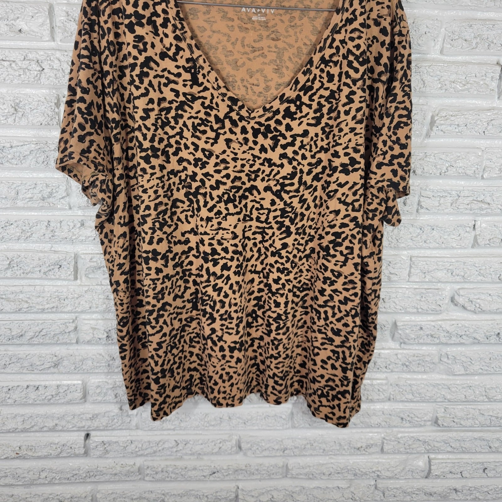 Ava Viv Womens Top 3X Plus Tee Short Sleeve Tan Animal Print Comfy Cotton Casual