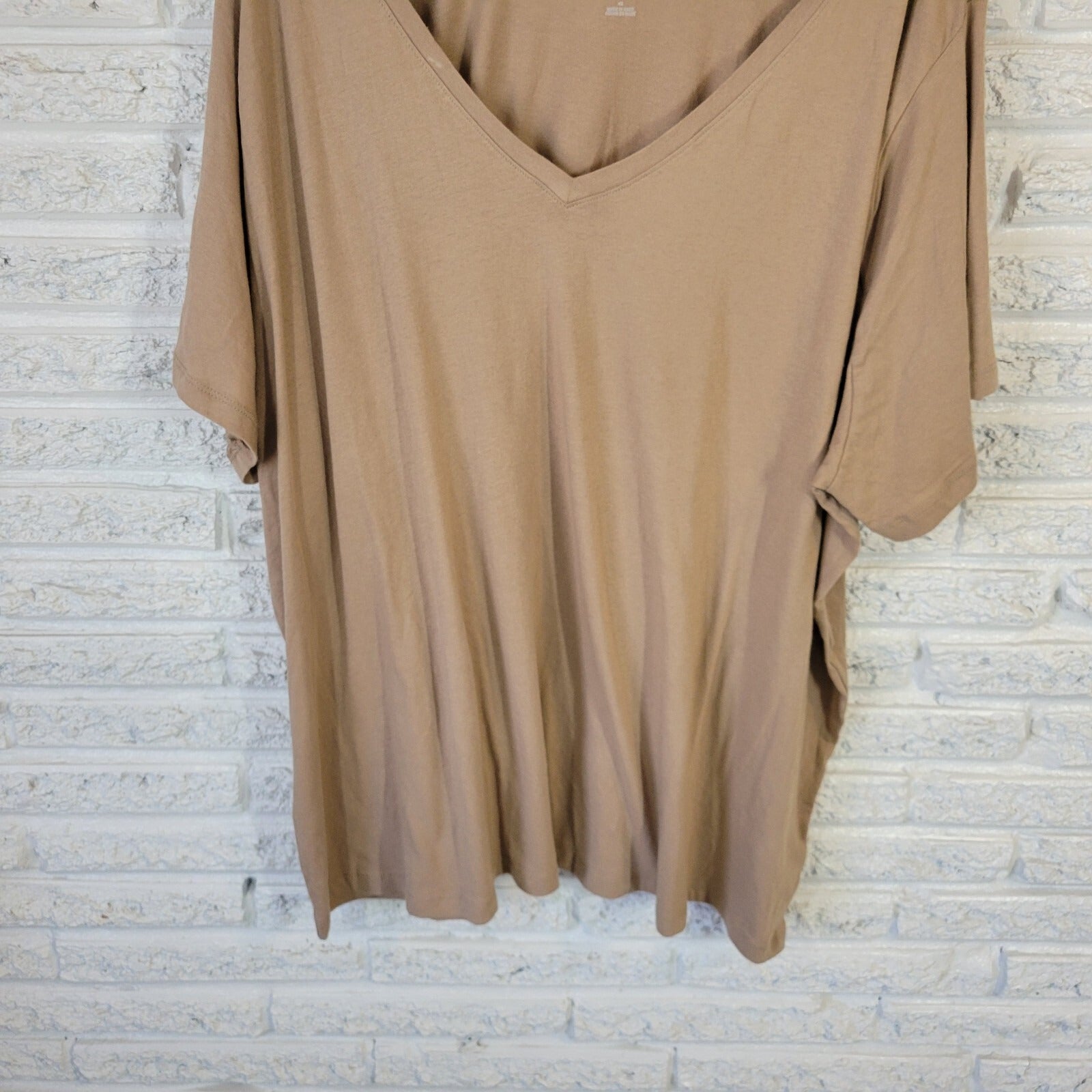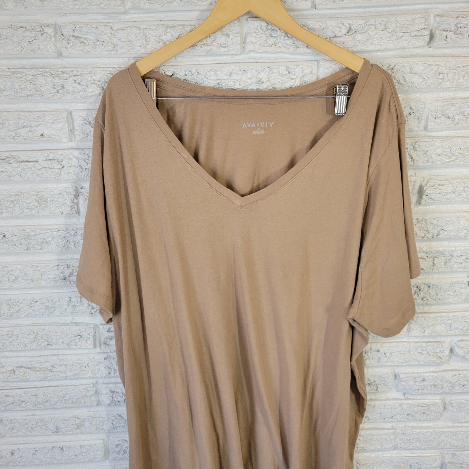 Ava Viv Womens Top 4X Plus Tee Short Sleeve Tan Lightweight Comfy Casual