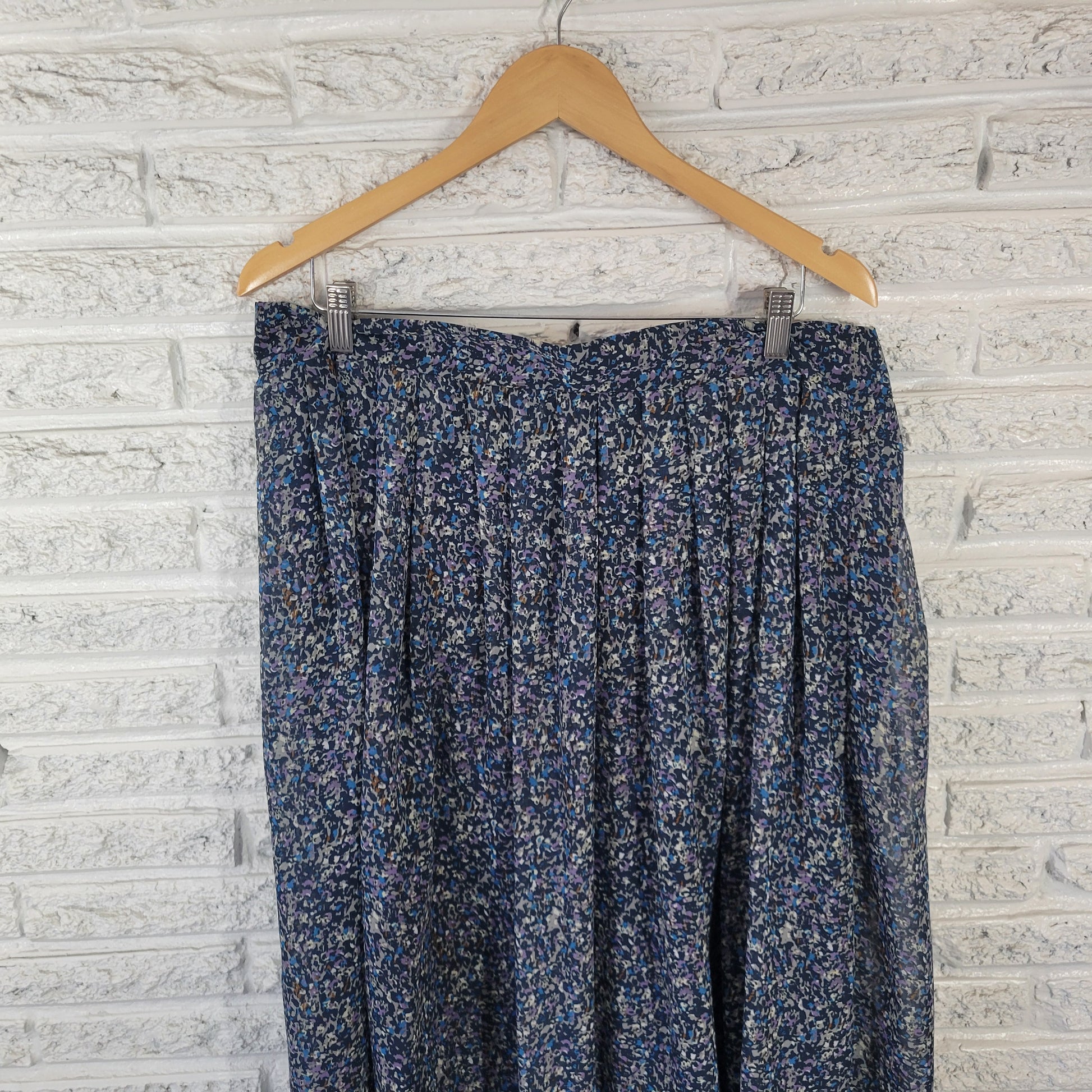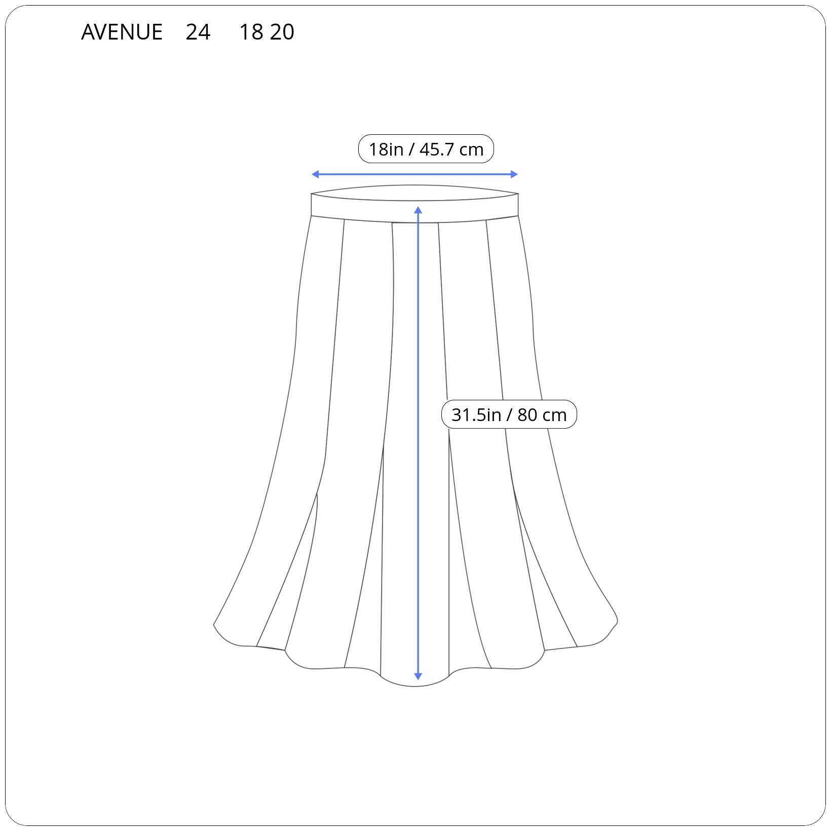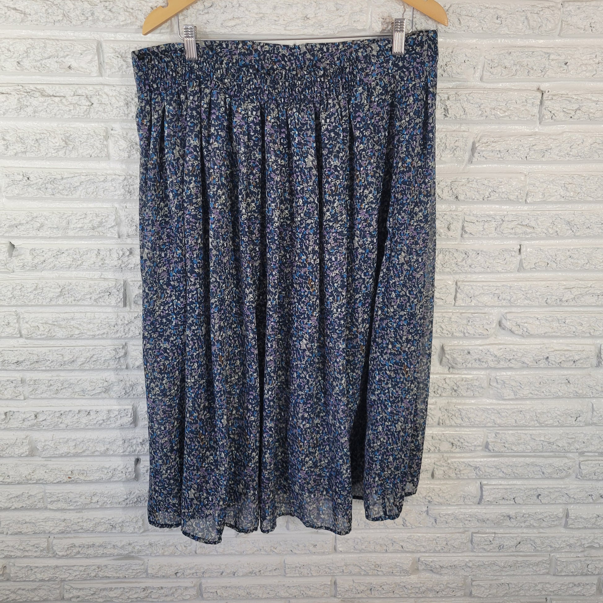The Avenue Women's Skirt in size 18 features a beautiful watercolor pattern in shades of blue and purple, perfect for casual, business, or travel occasions. Made of polyester, this skirt is lined, has an elastic waist for comfort, and is machine washable for easy care. It is designed with an A-line style and knee length, making it a versatile addition to any wardrobe for all seasons.