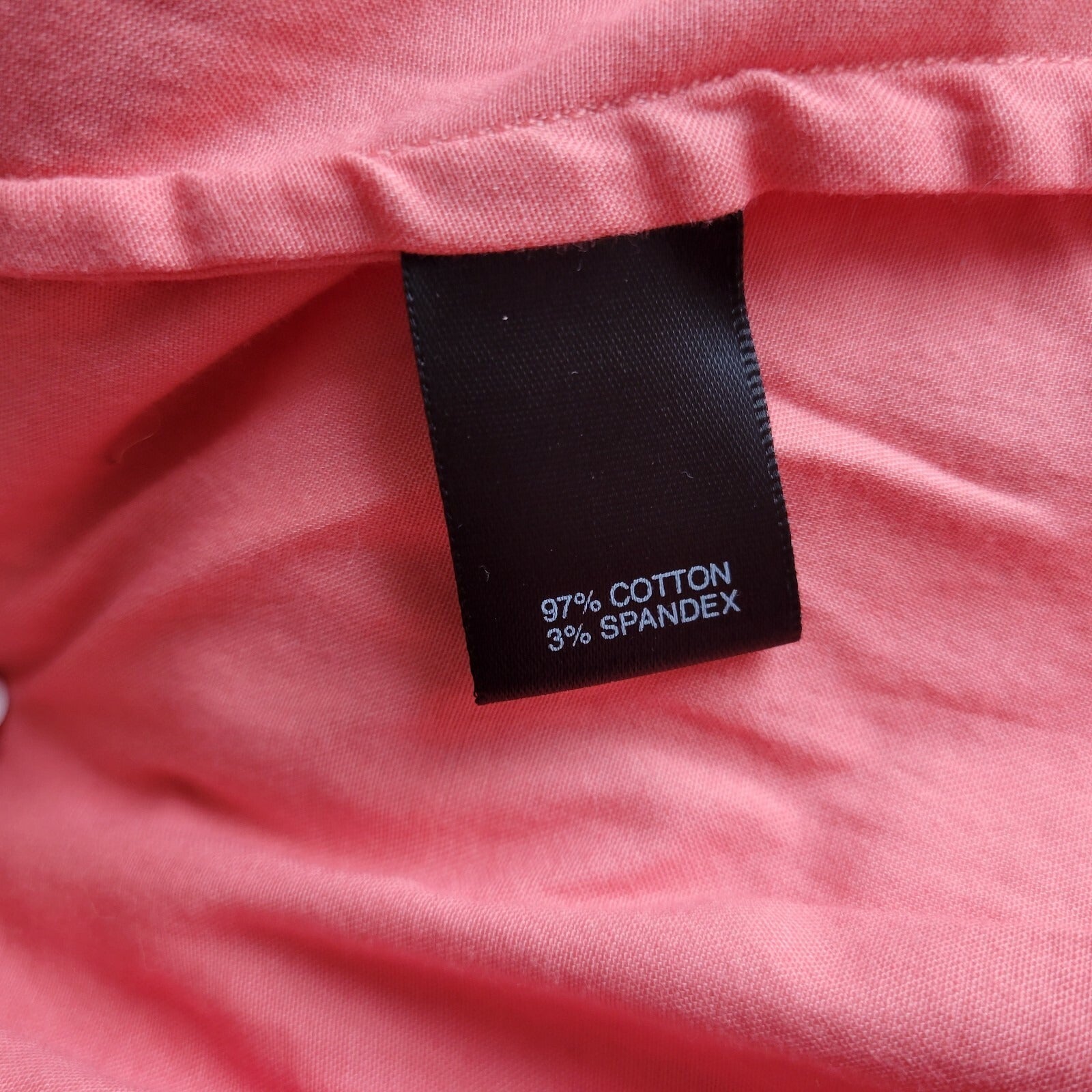 This Avenue women's shirt is a classic addition to your wardrobe. The peach orange color is perfect for any casual occasion. The shirt features a collared neckline and a button front closure. The 3/4 classic/fitted sleeves add a touch of elegance to the blouse. The cotton blend material is comfortable and stretchy, making it perfect for all seasons. The shirt is machine washable and easy to care for. The blouse is available in size 22/24, and it is a regular fit.