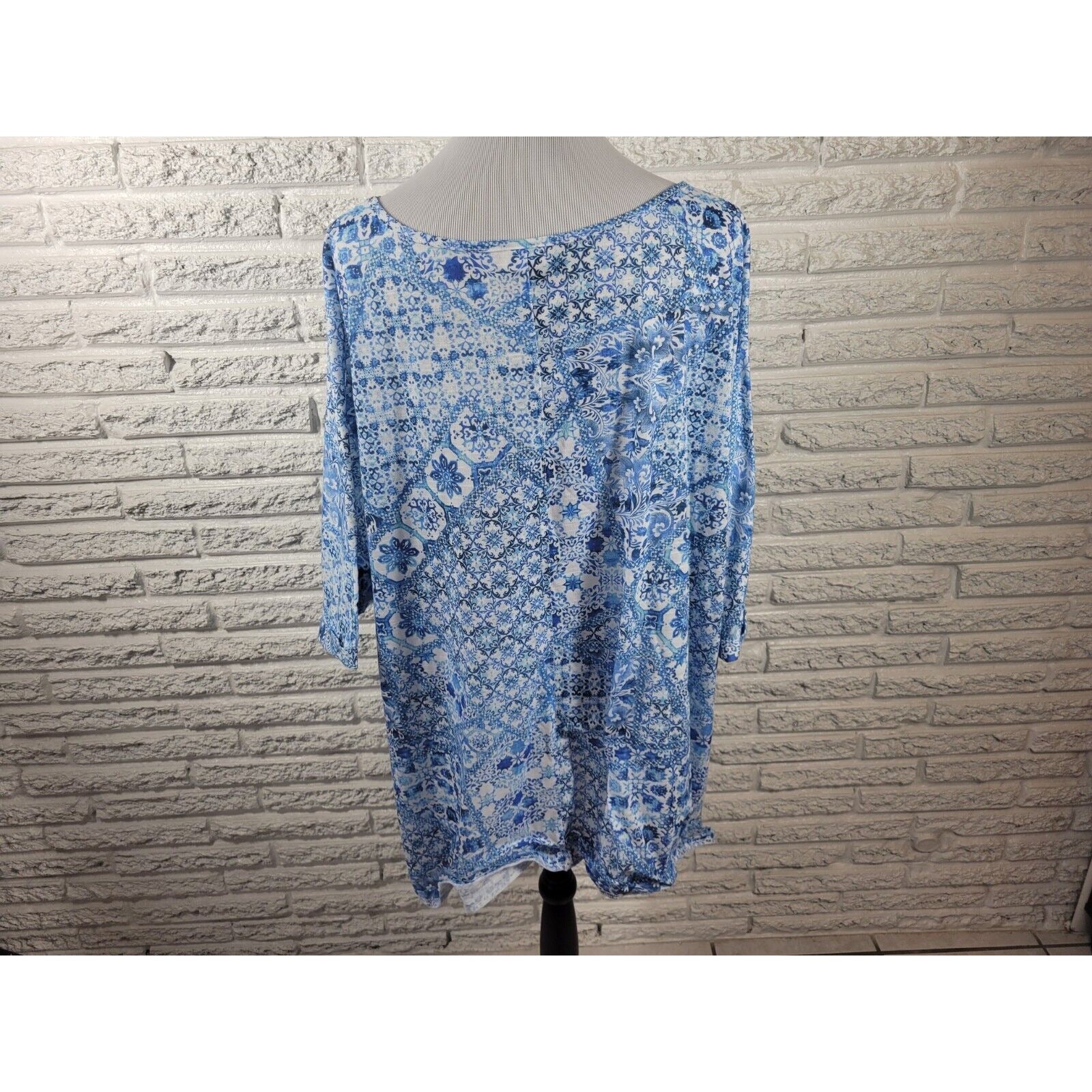 Avenue Women Top 30 32 Plus Tee Short Sleeve Blue Floral Polyester Lightweight