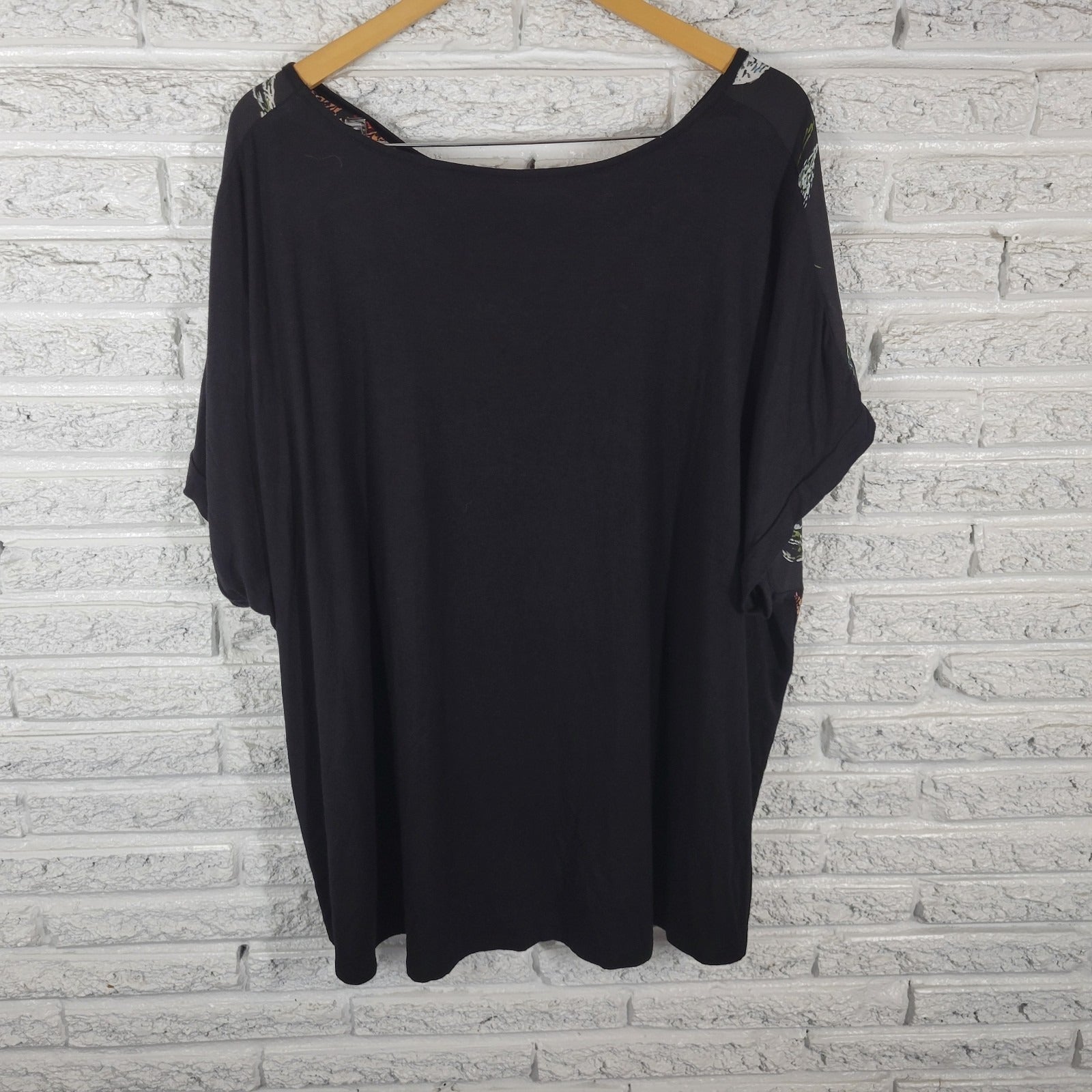 Avenue Women Top 30 32 Plus Tunic Cap Sleeve Black Pink Floral Polyester Career