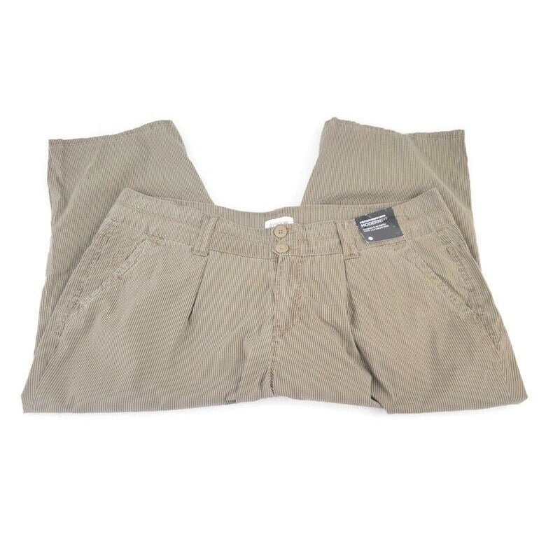 Introducing these stylish Avenue Women's Pants, perfect for any casual occasion. The brown striped design adds a touch of modern flair, while the high-rise and straight leg style provide a comfortable and flattering fit. Constructed with care from quality cotton material, these pants are also machine washable for easy maintenance. The zip closure and flap pockets add convenient features to these capri style pants. With a size of 18 and a waist size of 40 inches, these pants are perfect for plus size women. Ideal for any season, these pants are sure to become a favorite in your wardrobe.