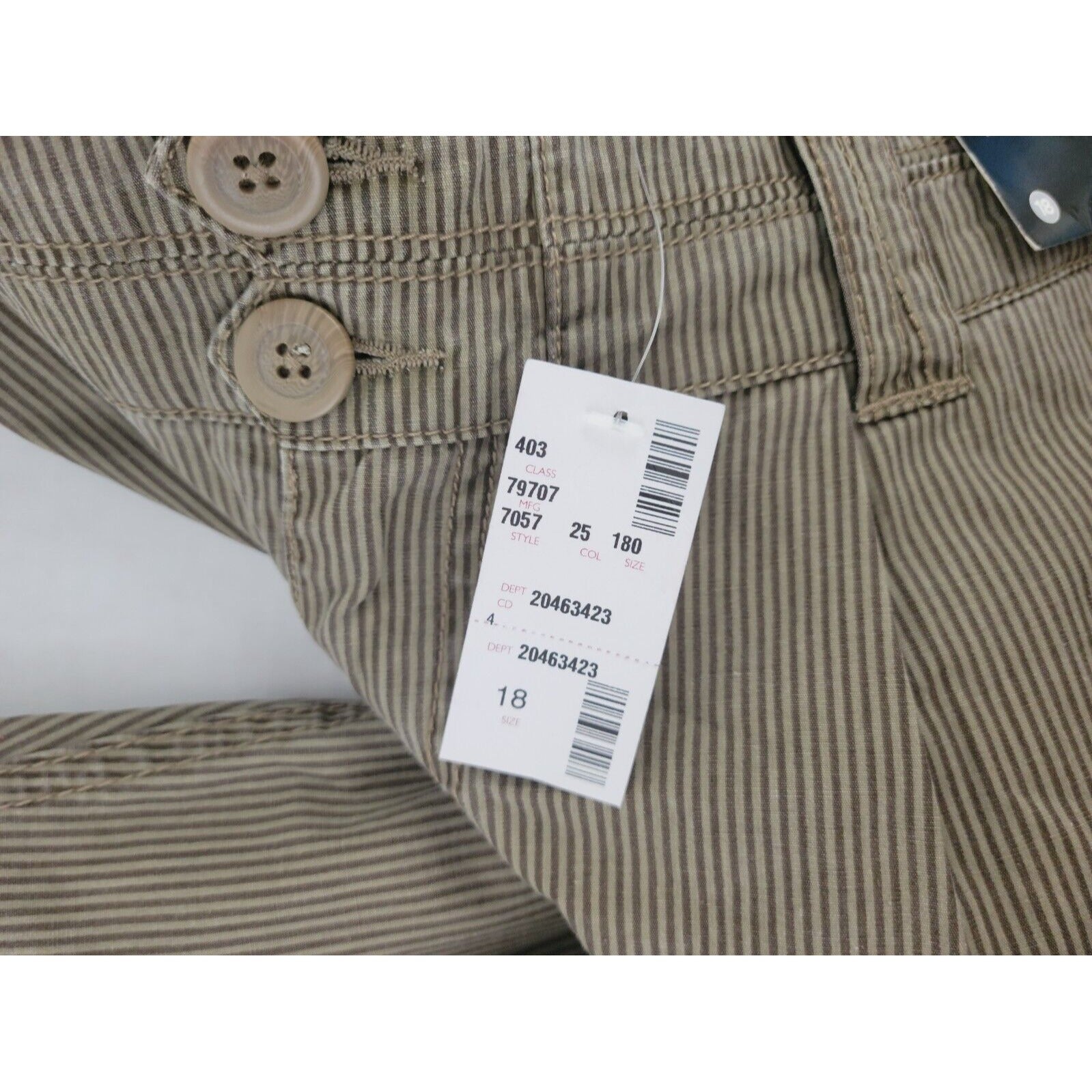 Avenue Womens Pants 18 Plus Capri Modern Fit Flap Pockets Brown Stripe Cotton