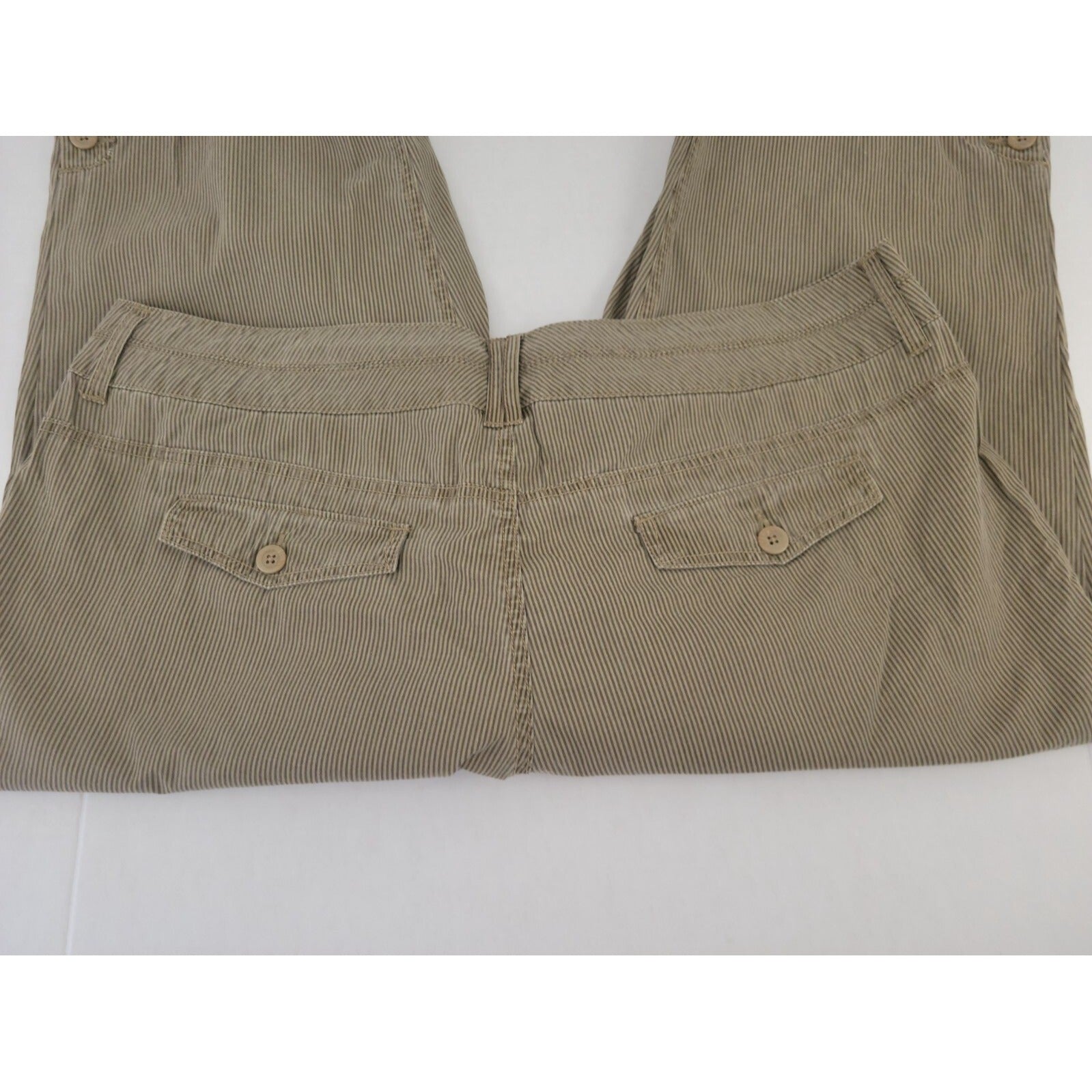 Introducing these stylish Avenue Women's Pants, perfect for any casual occasion. The brown striped design adds a touch of modern flair, while the high-rise and straight leg style provide a comfortable and flattering fit. Constructed with care from quality cotton material, these pants are also machine washable for easy maintenance. The zip closure and flap pockets add convenient features to these capri style pants. With a size of 18 and a waist size of 40 inches, these pants are perfect for plus size women. Ideal for any season, these pants are sure to become a favorite in your wardrobe.