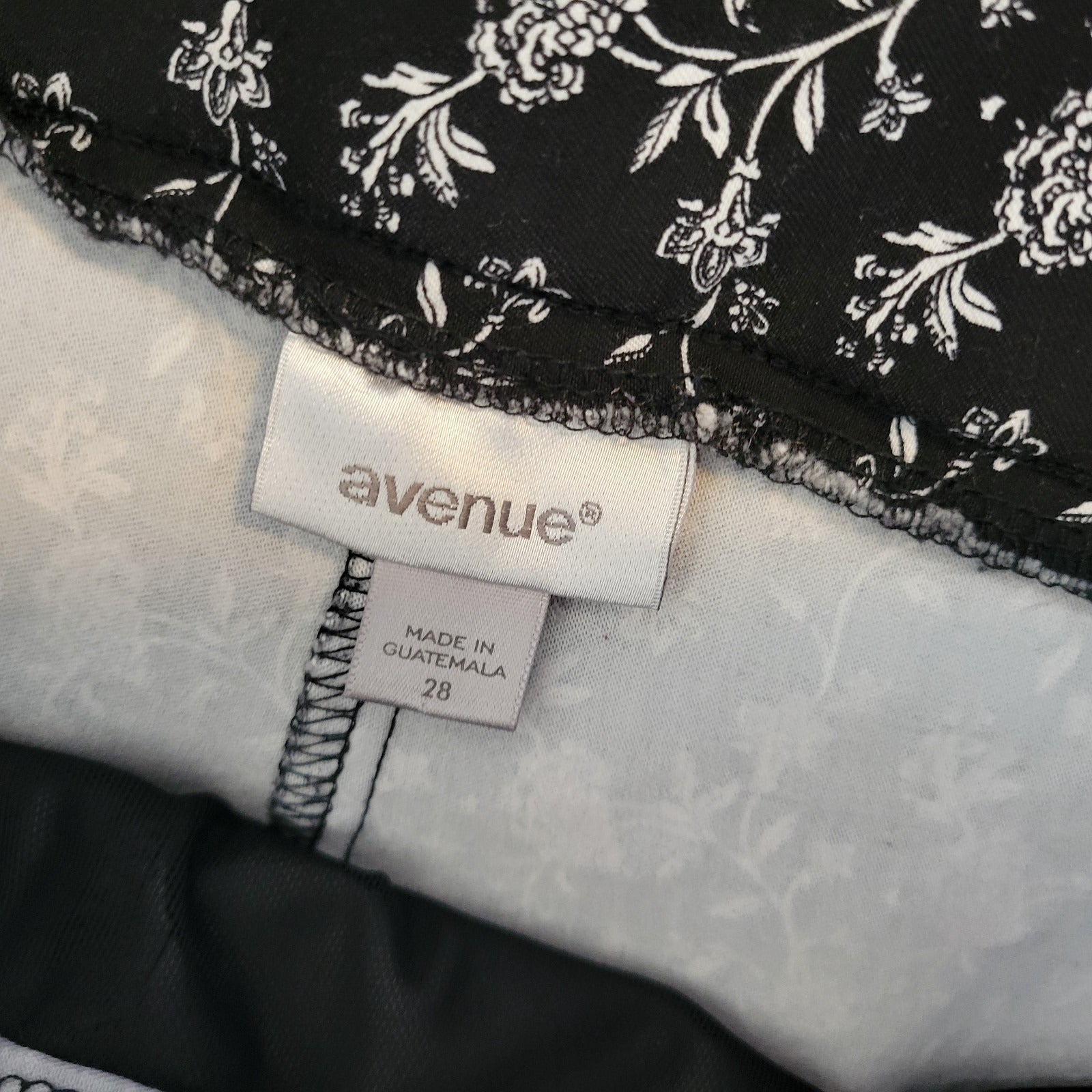 Avenue Womens Pants 28 Plus Capri Black White Floral Pull On Casual Comfy