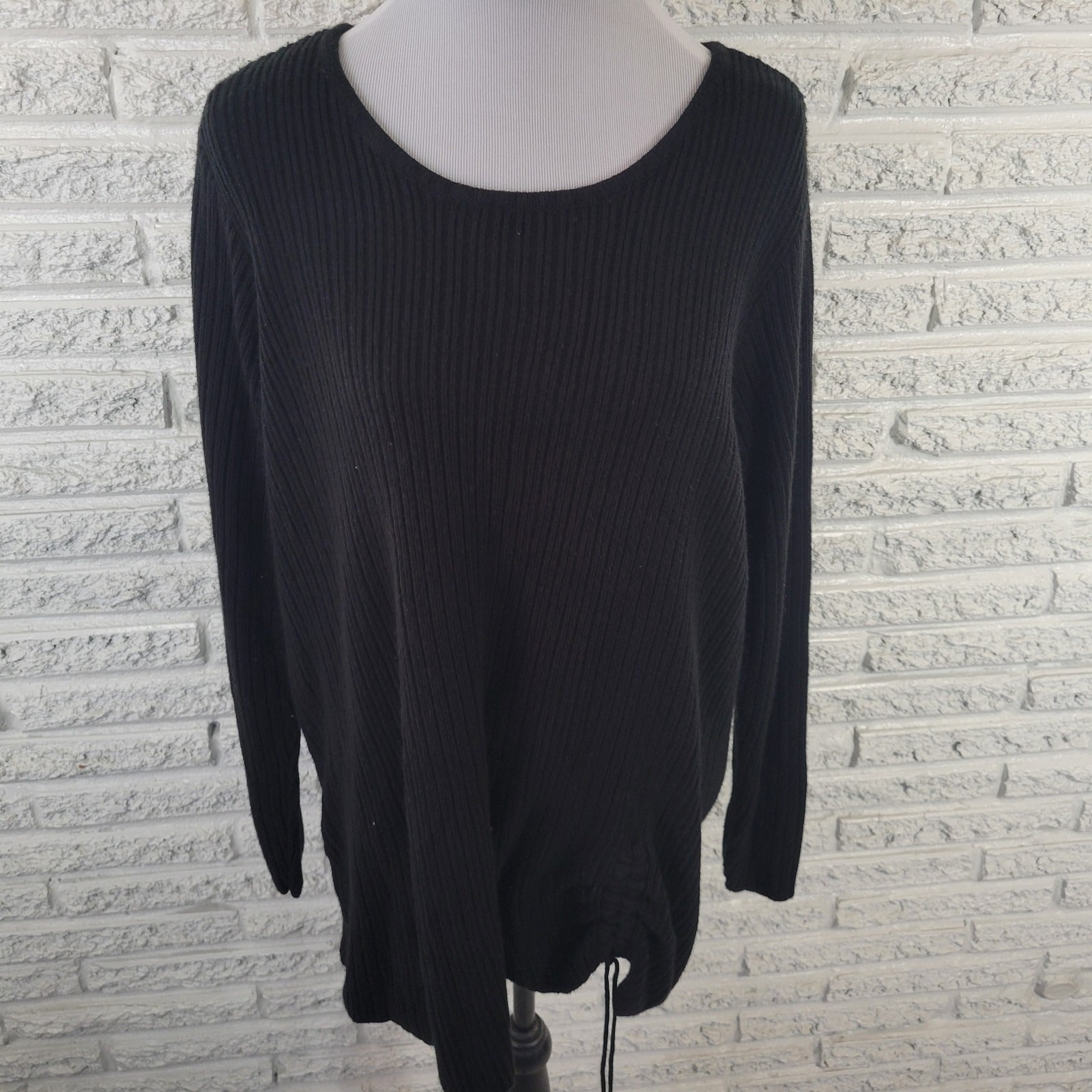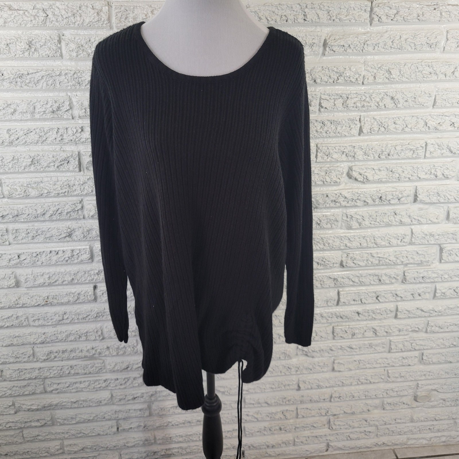 Avenue Womens Sweater 18 20 Plus Long Sleeve Ruched Side Black Acrylic Casual