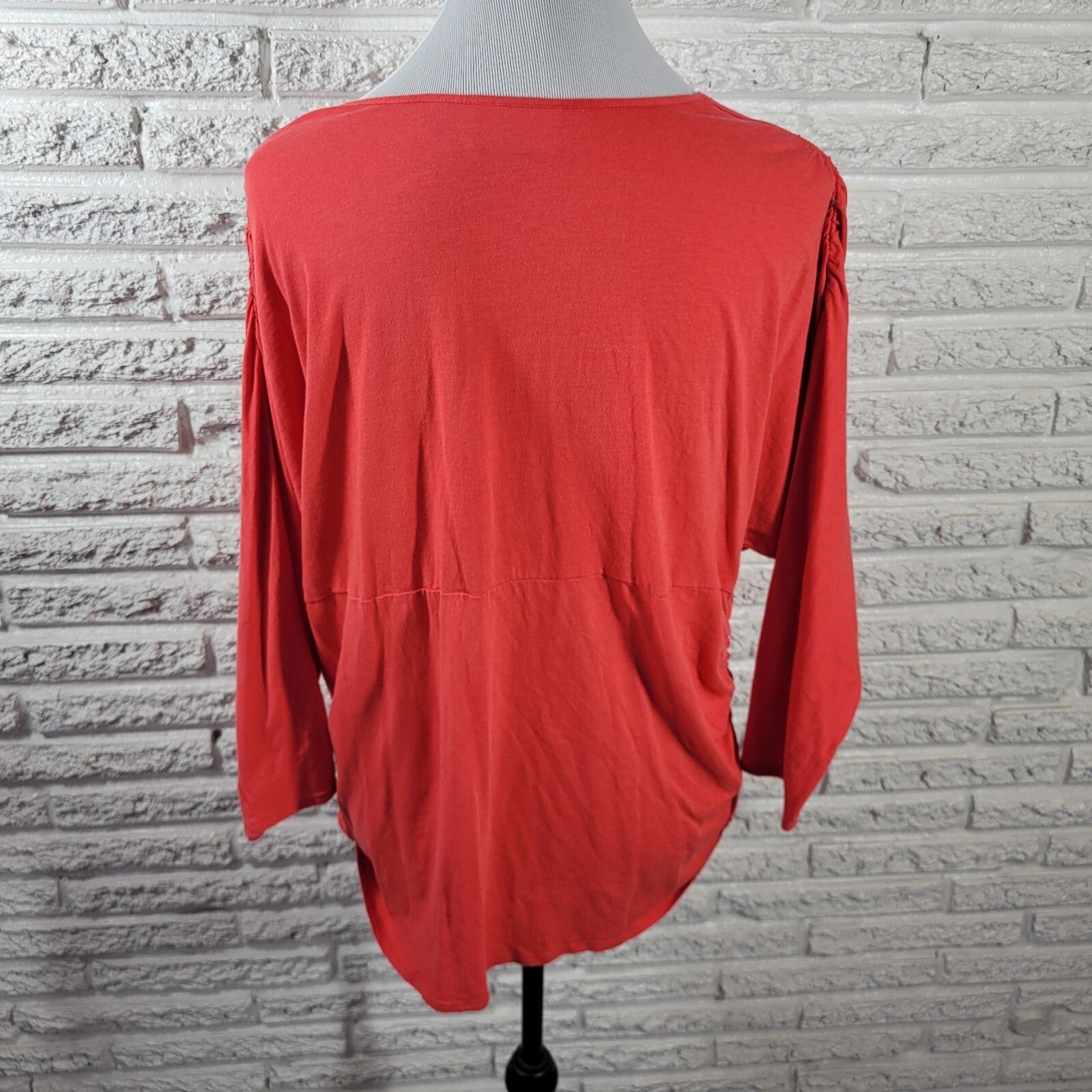 Avenue Womens Top 18 20 Plus 3/4 Sleeve Red Orange Button Up Casual Ruched