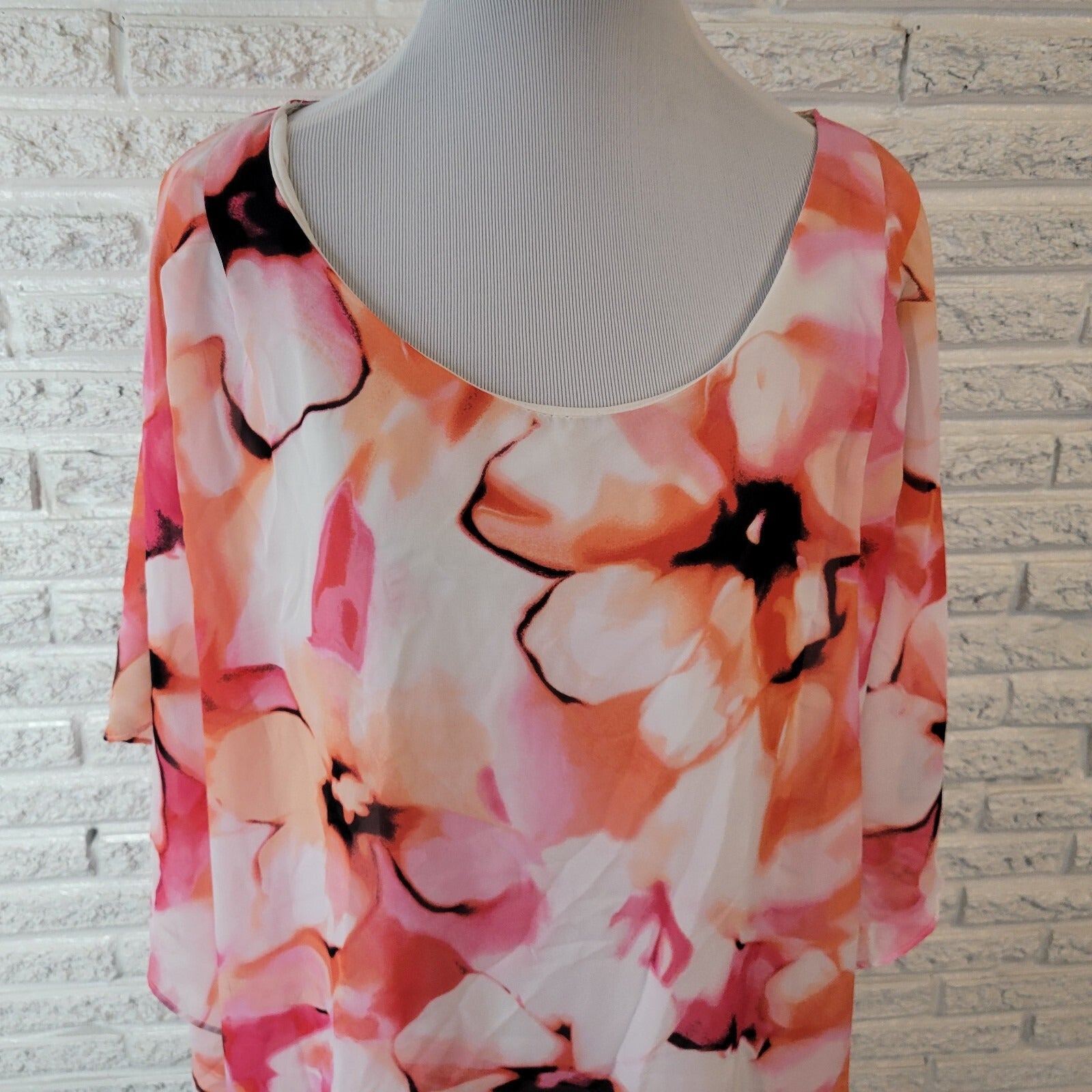 Avenue Womens Top 18 20 Plus Kimono Sleeve Lightweight Polyester Pink Floral