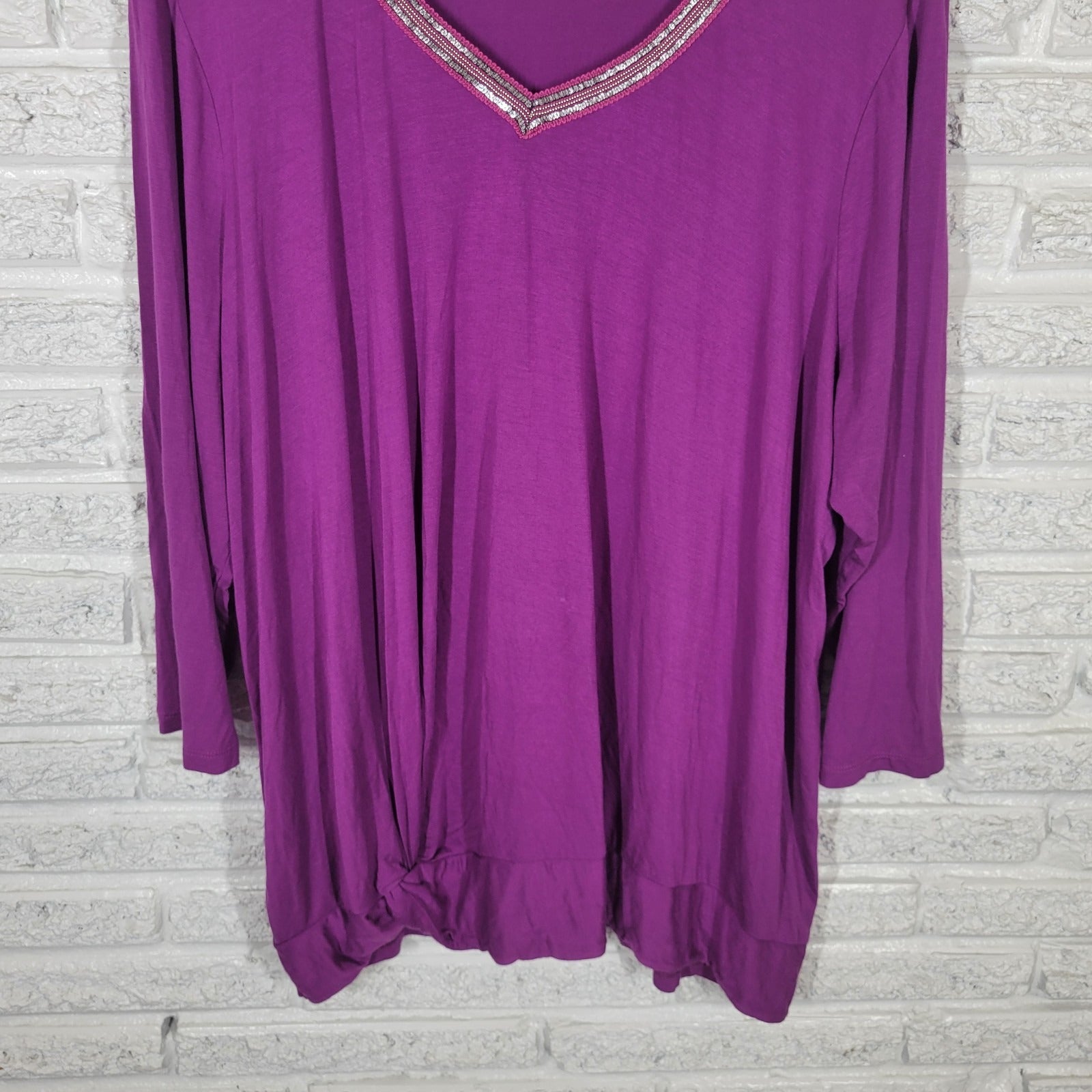 Avenue Womens Top 22 24 Plus 3/4 Sleeve Purple Semi Sheer Studded Lightweight