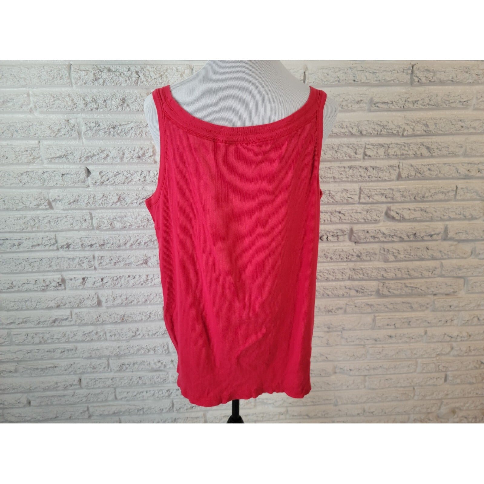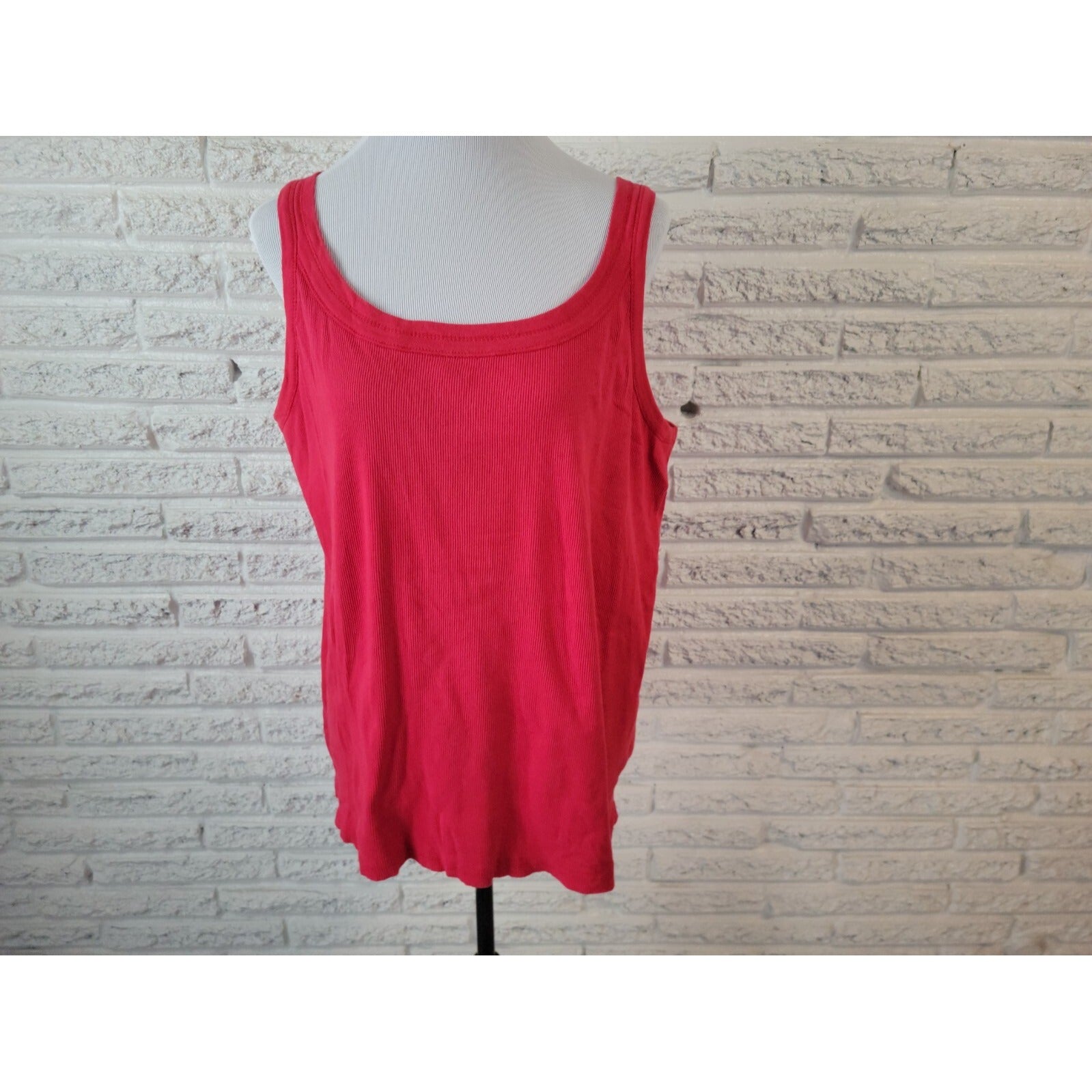 Avenue Womens Top 22 24 Plus Tank Red Ribbed Cotton Pullover Casual Basic