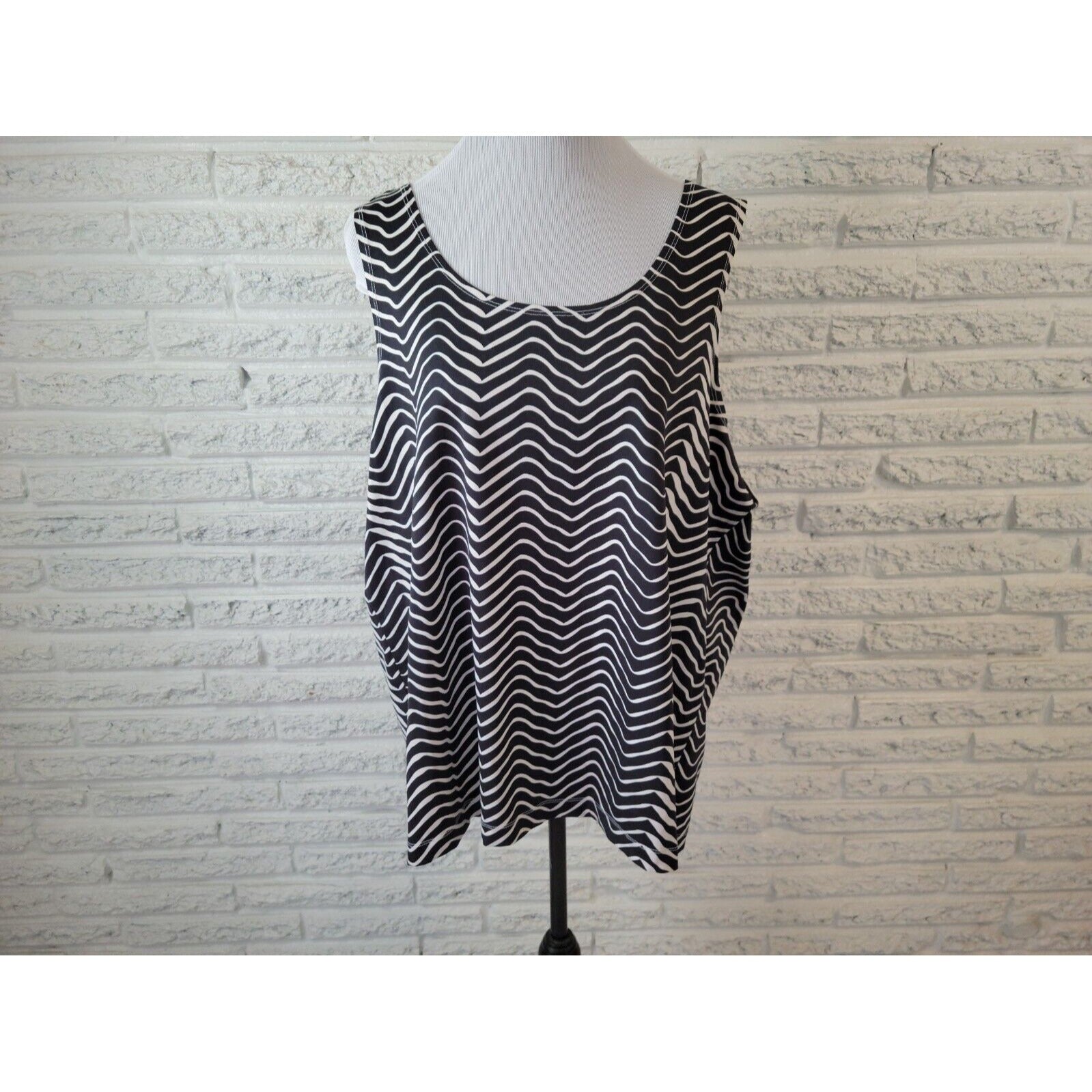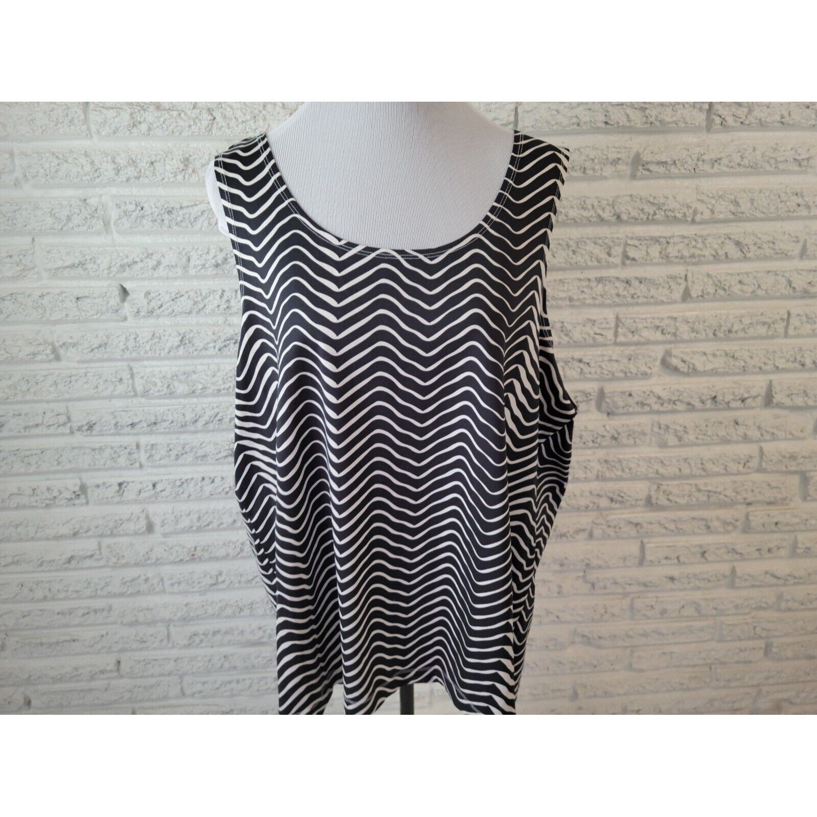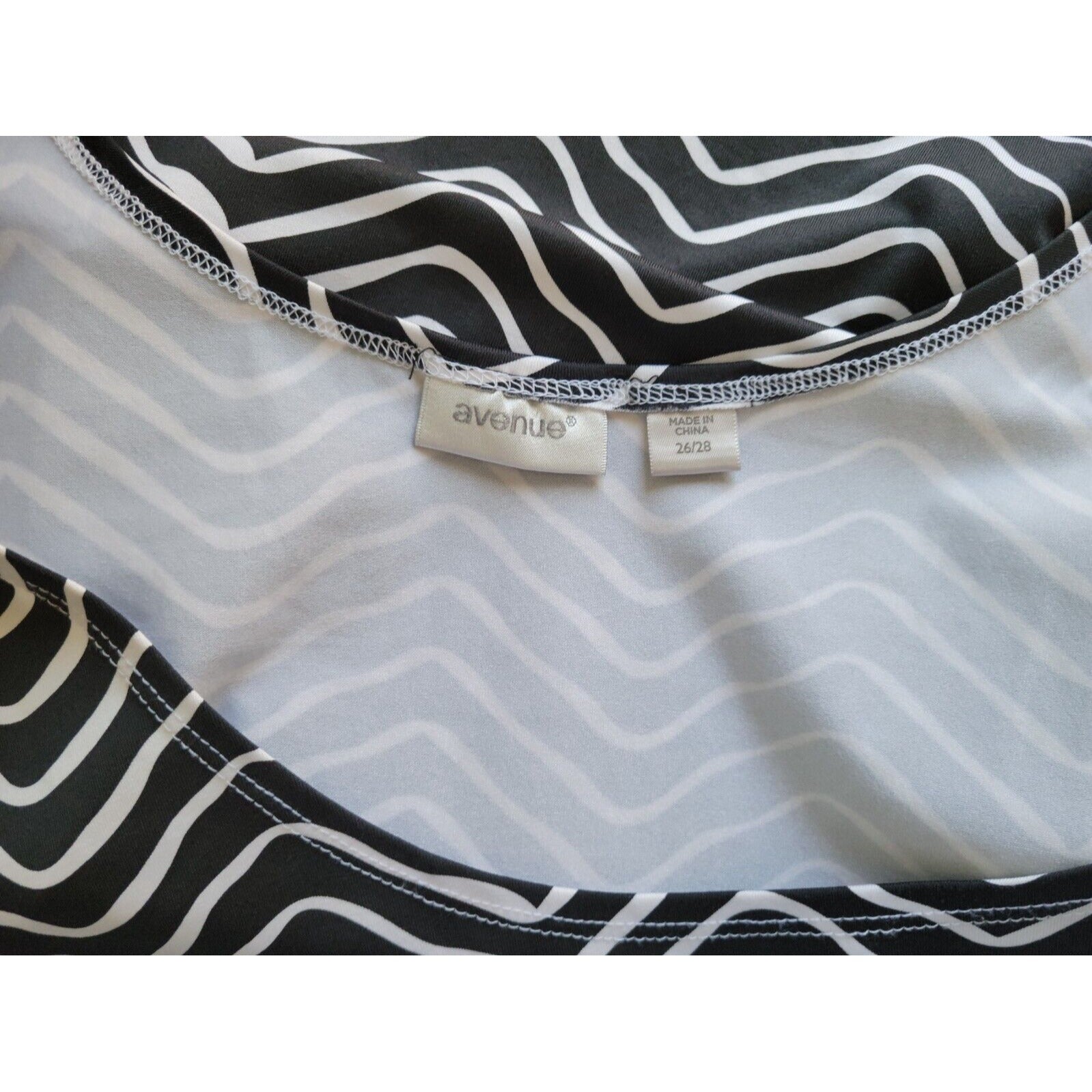 Avenue Womens Top 26 28 Plus Tank Black Geometric Pullover Nylon Spandex