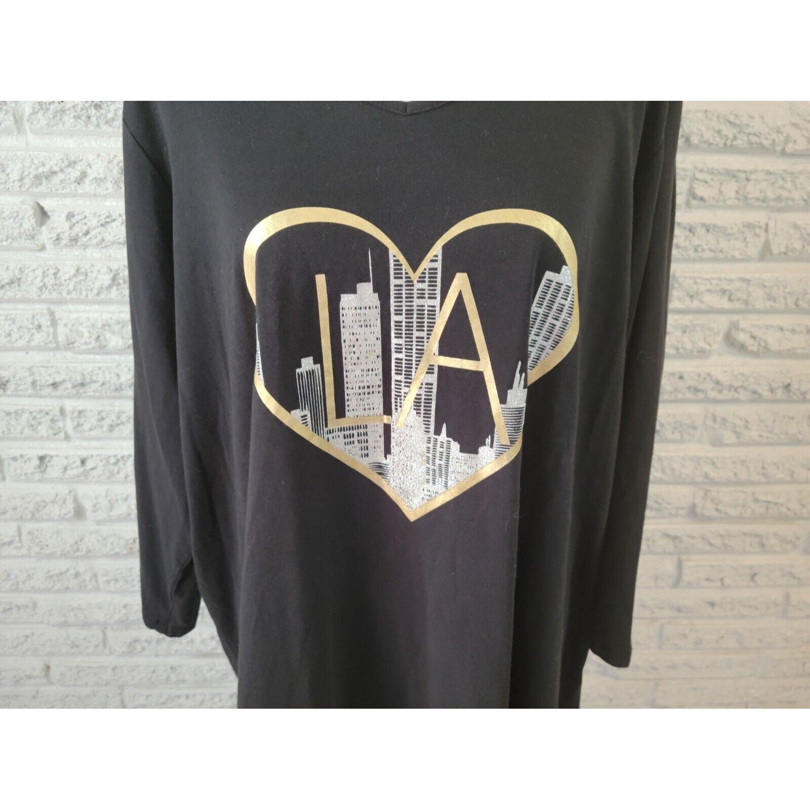 Avenue Womens Top 26 28 Plus Tee Tunic Los Angeles Cityscape 3/4 Sleeve Metallic