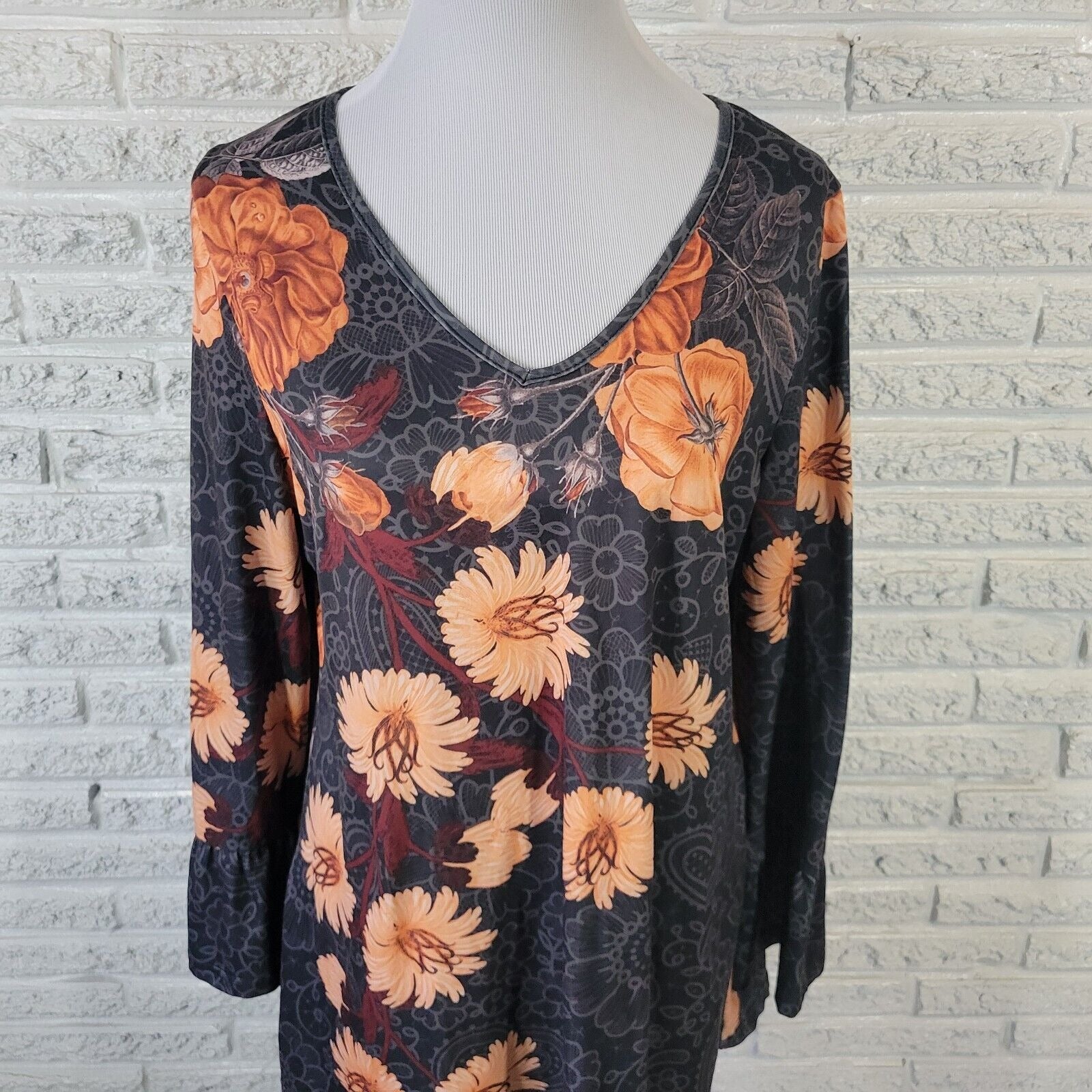 Azalea Firmiana Womens Top Extra Large XL Tunic Bell Sleeve Orange Floral Comfy