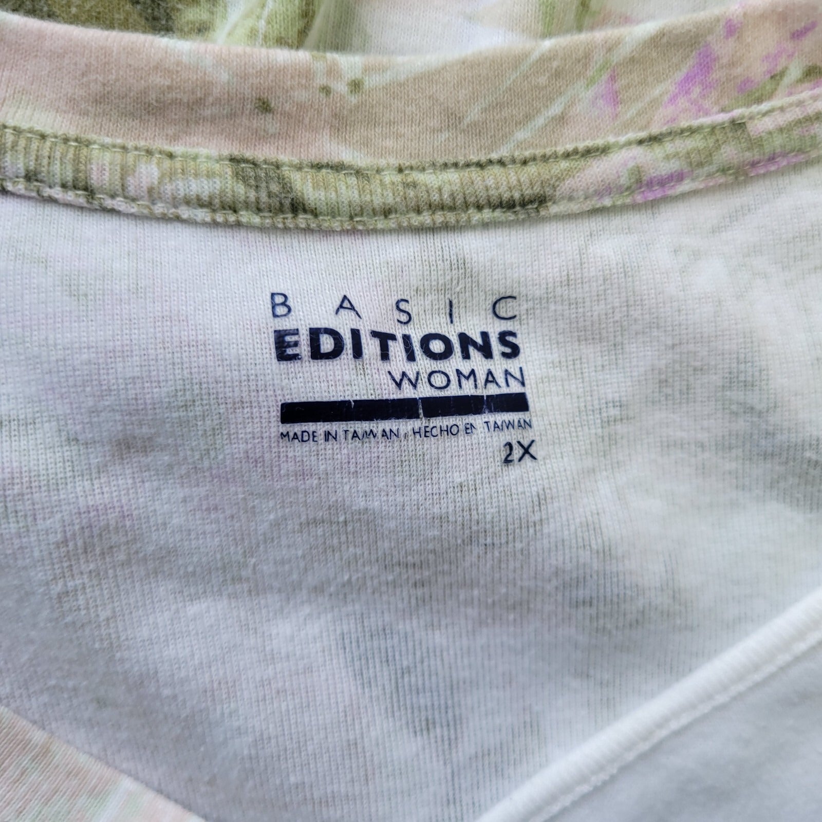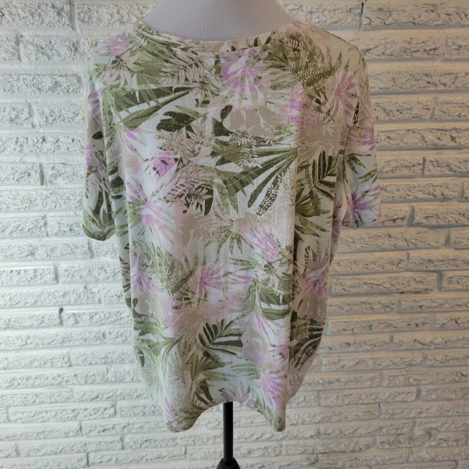 Basic Editions Womens Top 2X Plus Tee Short Sleeve Green Purple Floral Studded