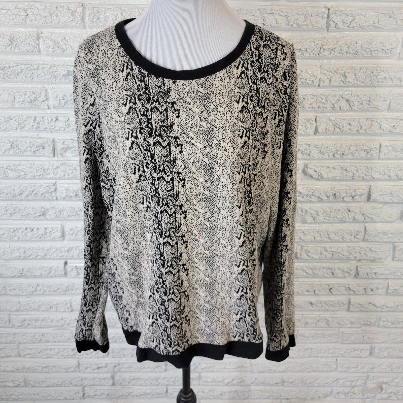 BB Dakota Womens Sweatshirt 2X Plus Black Gray Animal Print Comfy Poly Blend