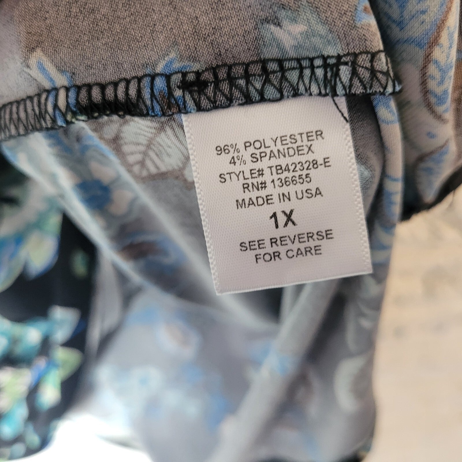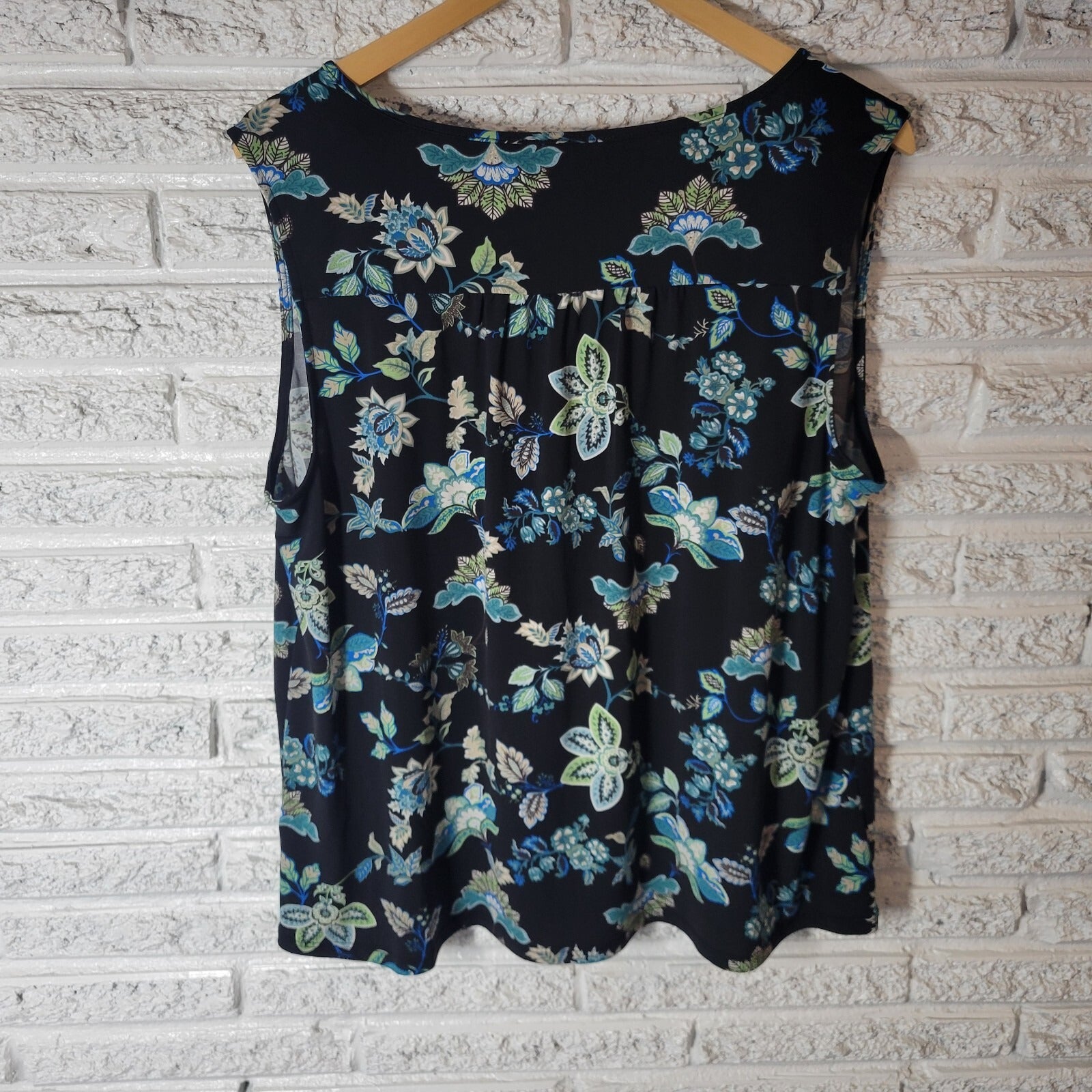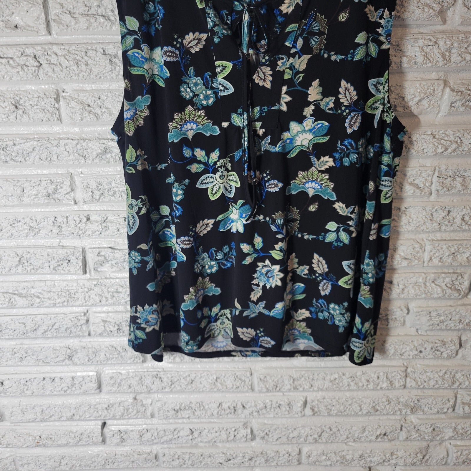 Beacon Apparel Women Top 1X Plus Sleeveless Black Blue Floral Keyhole Poly Blend