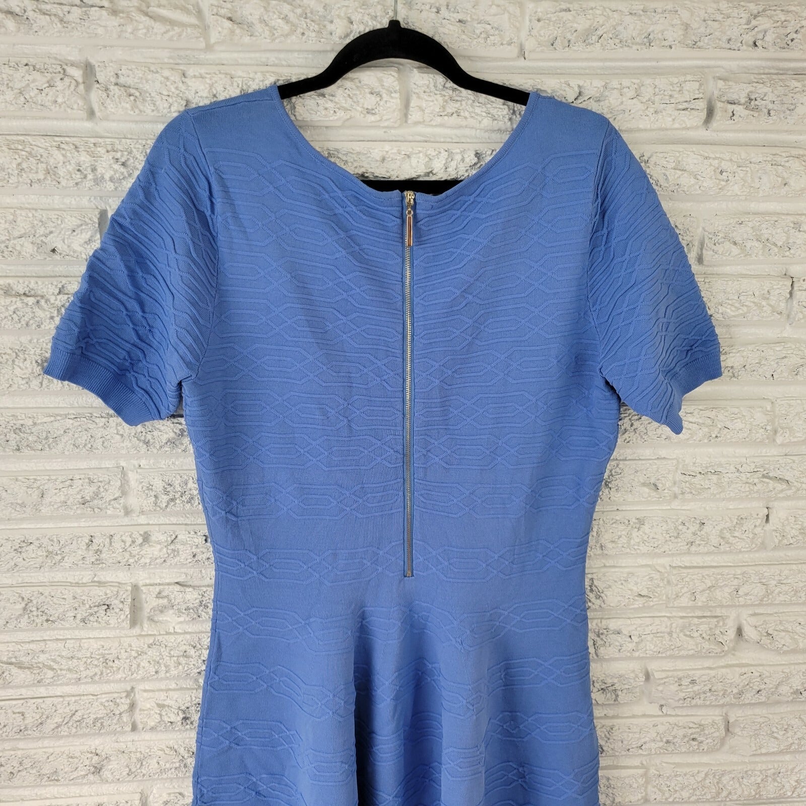 This Belle Bagley Mischka dress is perfect for any casual or business occasion. The round neckline and short sleeves provide a comfortable fit, while the zip closure ensures easy wear. The knee-length dress is made of a blue knit fabric, consisting of nylon and rayon, and is machine washable for easy care. The dress has a solid pattern and a fit & flare style, with a regular fit and XL size type. It is suitable for all seasons, including winter, summer, fall, and spring, and is designed for women of all ages. Buy this dress now and add a touch of elegance to your wardrobe!