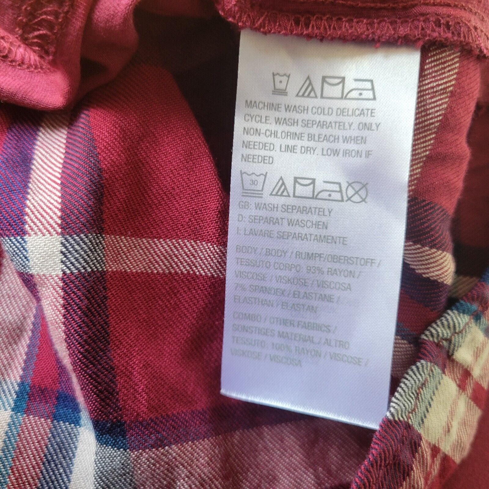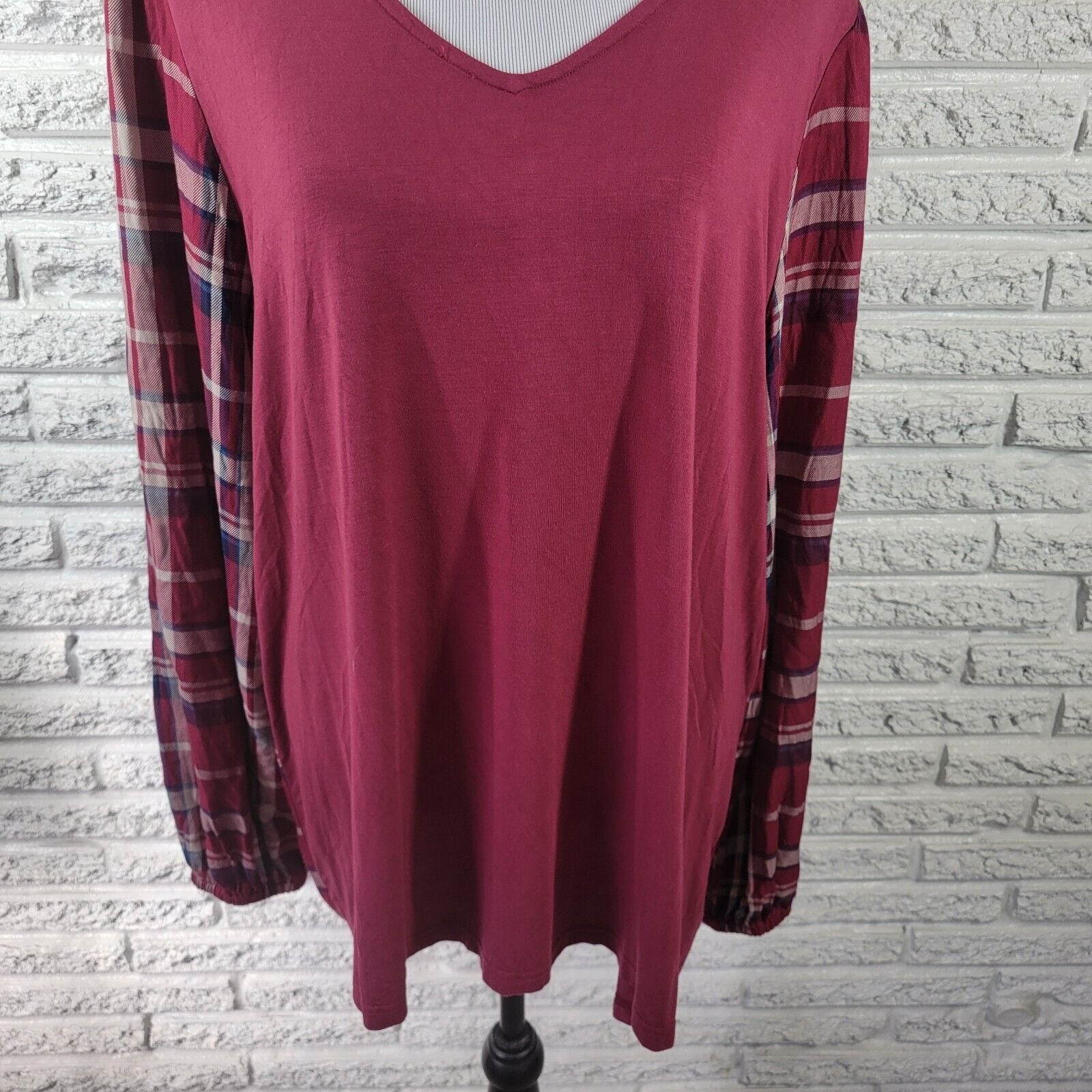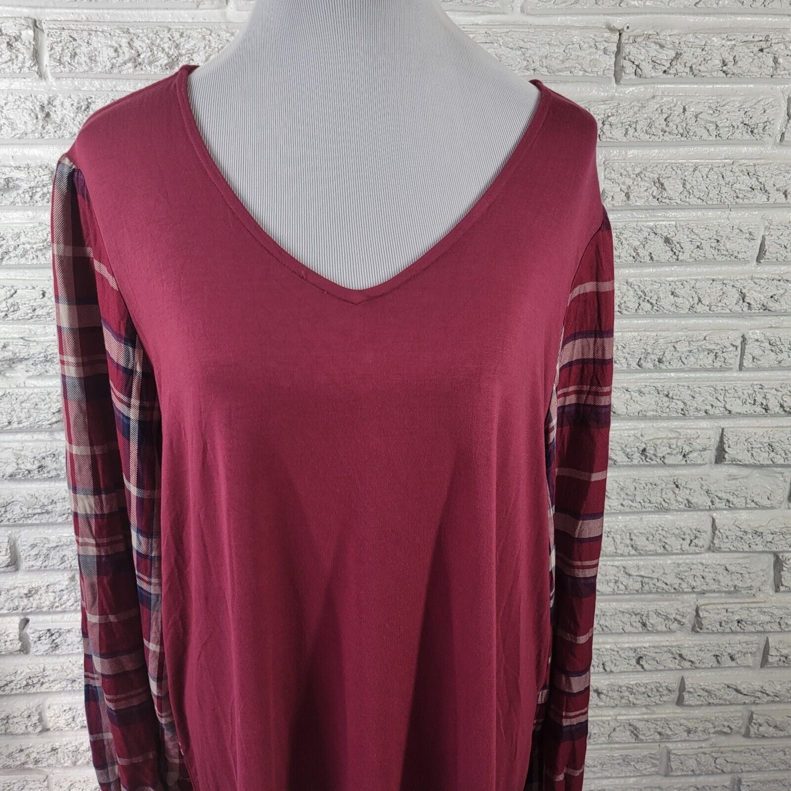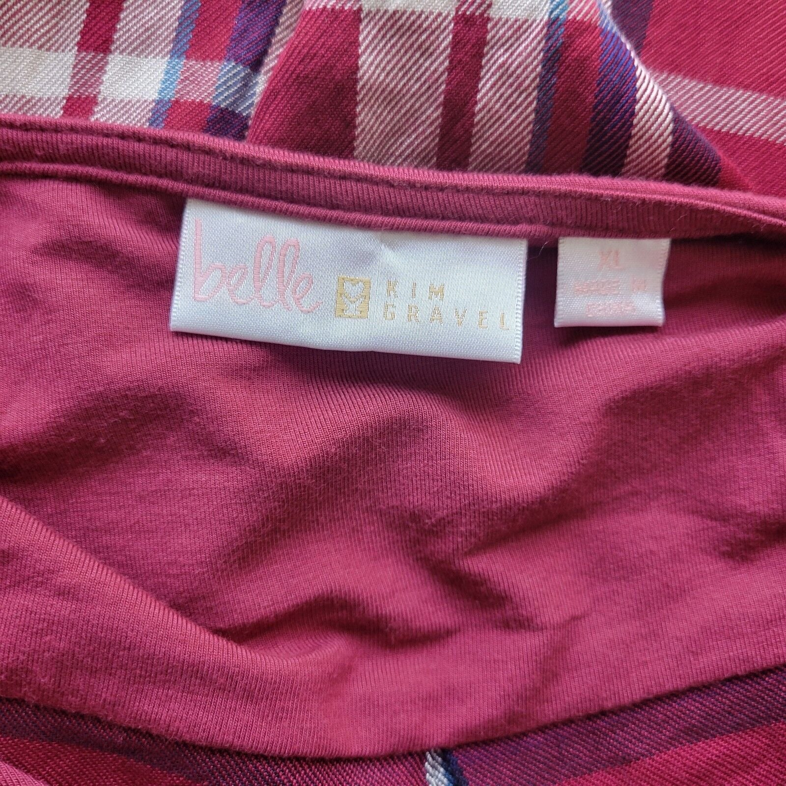 Belle Kim Gravel Womens Top Extra Large XL Long Sleeve Burgundy Plaid Comfy