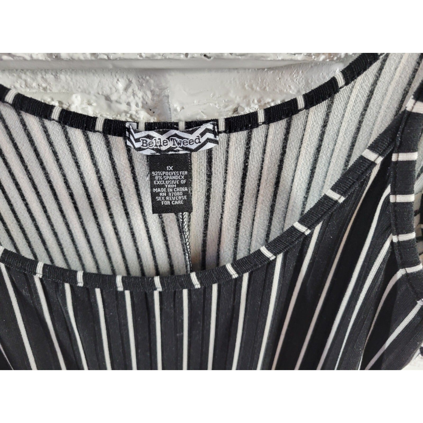 Belle Tweed Womens Dress 1X Plus Slip Spaghetti Strap Black Stripe Poly Blend