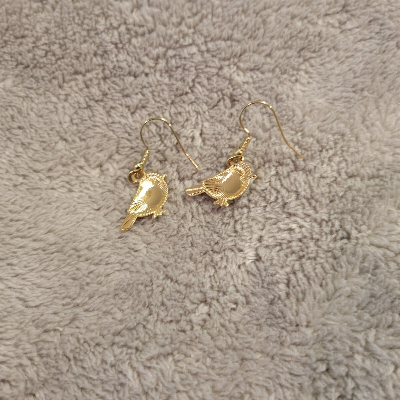 Birds #3 Womens Earrings One Pair Blue Hanging Dangle Aluminum Alloy Gold Tone