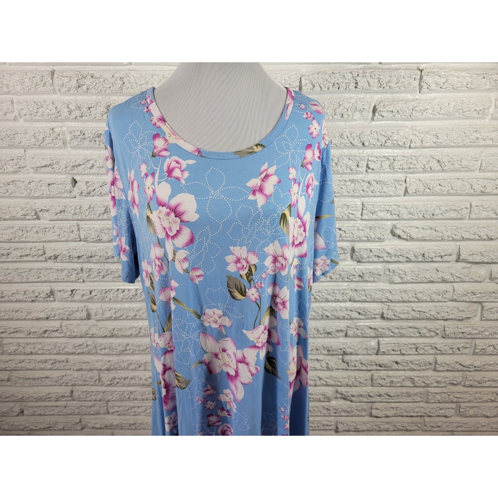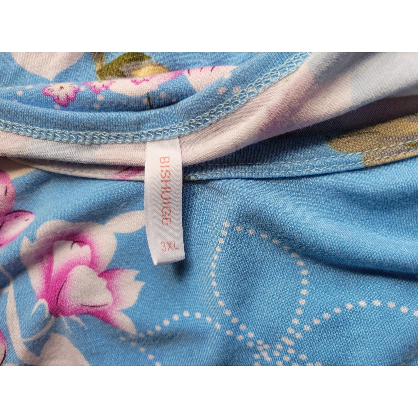 Bishuige Women Top 3XL Plus Tee Tunic Short Sleeve Blue Floral Casual Shark Bite