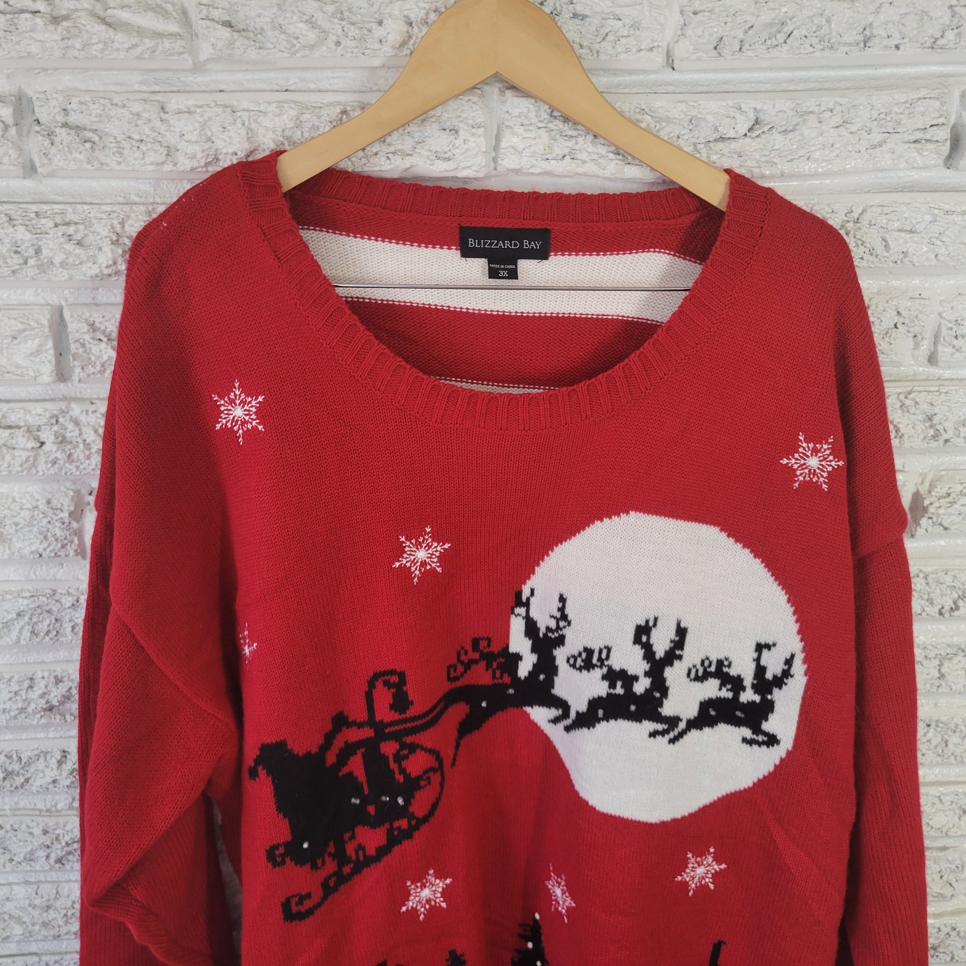 Blizzard Bay Women's 3X Christmas Sweater Red Santa Sleigh Beaded SWE182E