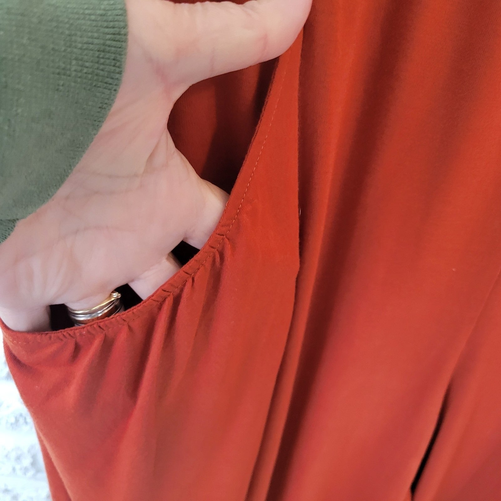 The Bloomchic Women's Jumpsuit in size 18/20 is a stylish and versatile one-piece outfit perfect for travel and casual occasions. This sleeveless jumpsuit features a V-neckline and a pullover closure for easy wear. The burnt orange color and harem style with capri length make it a trendy choice for all seasons. Made from a comfortable polyester blend, this jumpsuit also includes convenient pockets and has a regular fit. Ideal for women looking for a flattering plus-size option with a touch of boho chic.
